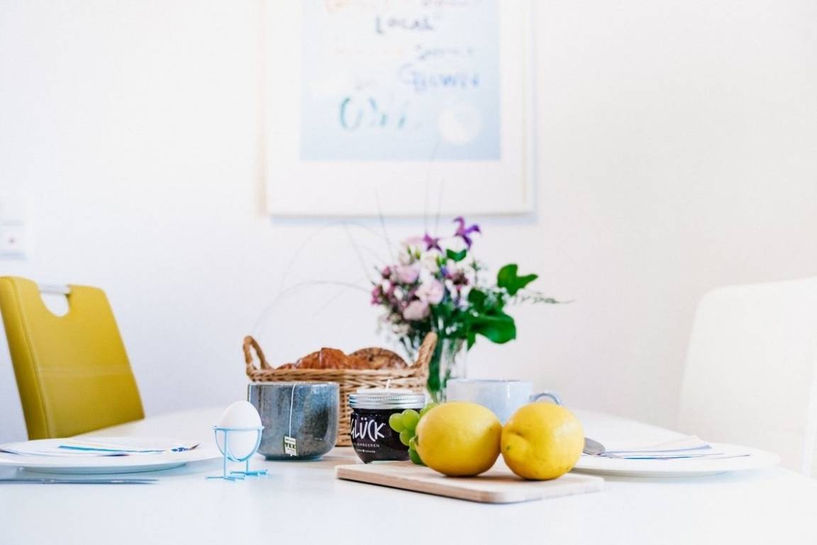 Die hochwertige Küchenzeile im Wohnbereich ist mit Backofen, Geschirrspülmaschine und allen nötigen Küchenutensilien komplett ausgestattet. Um ihre Mahlzeiten einzunehmen können Sie an dem Esstisch in dem Raum Platz nehmen.