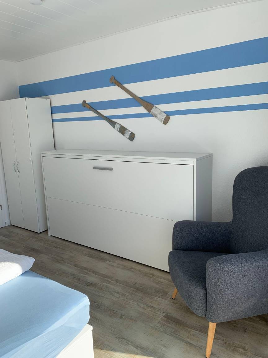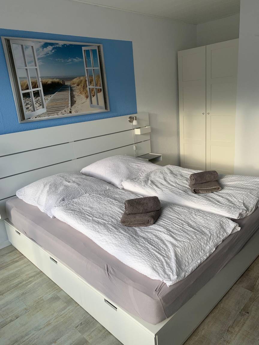 Diese Wohnung verfügt über 1 großzügiges Schlafzimmer mit Doppelbett, sowie einem Wandbett (90x200) mit Zugang zu einem Balkon sowie der Möglichkeit ein Kindereisebett zu platzieren. Weiterhin finden Sie ein modernes Duschbad sowie einen hellen Wohnraum mit Schlafsofa sowie Zugang zu einem weiteren Südbalkon vor.