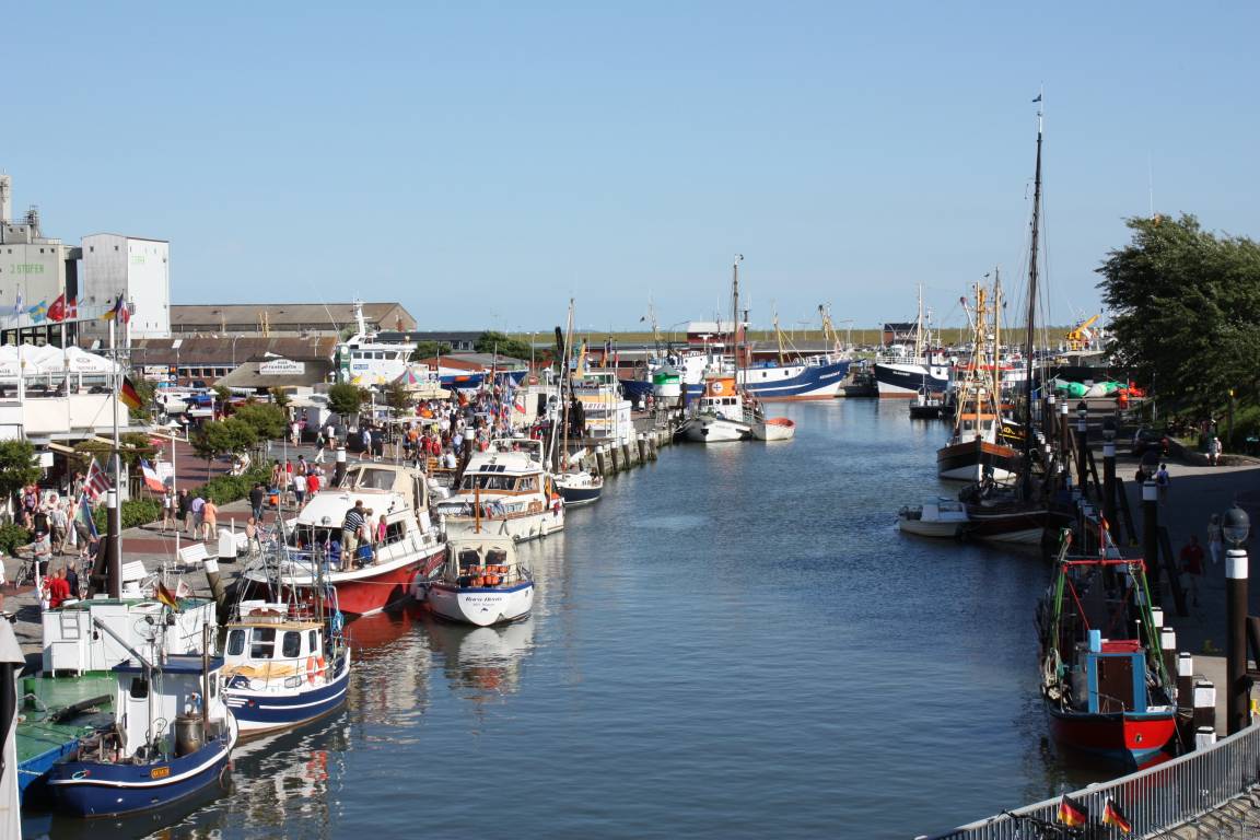Um den großen Fischereihafen bis zum Museumshafen lässt es sich herrlich bummeln. Dabei können sie mit einem Krabbenbrötchen in der Hand den Fischern zusehen.