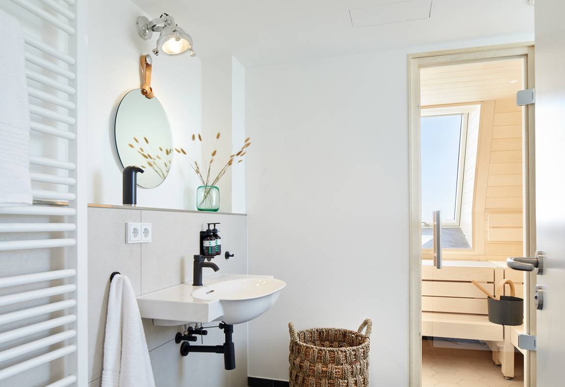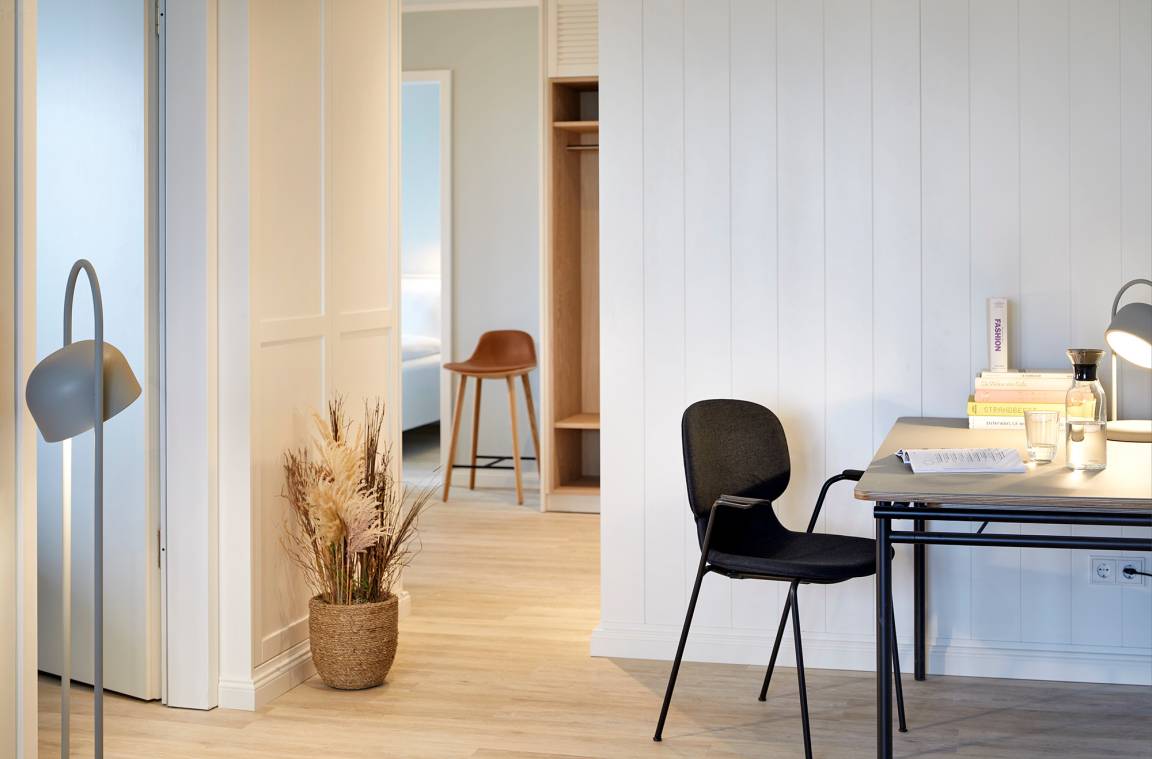 Umso schöner, dass wir unsere Buddies von Eva Solo für die Einrichtung unseres zweiten Penthouses begeistern konnten. Schick ist es hier allemal. Und obendrauf erwarten euch großartige Gimmicks wie eine eigene Sauna und ein Whirlpool auf dem Balkon! Dazu kommen zwei Schlafzimmer, zwei Bäder, ein weiterer Balkon und ein komfortabler Wohnbereich mit Küche. Ach, und fast vergessen: Meerblick gibt's natürlich auch.