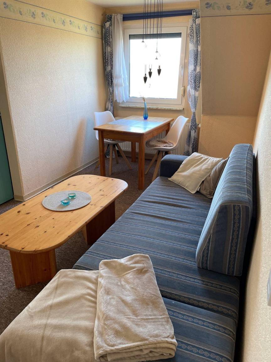 Die Ferienwohnung bietet Platz für zwei Personen und umfasst ein Doppelbett sowie einen Wohn- und Essbereich. Anreise und Schlüsselübergabe erfolgen nach vorheriger Absprache. Haustiere sind nicht erlaubt. Saisonabhängige Leistungen können variieren. Gemeinschaftliche Einrichtungen sind nutzbar.