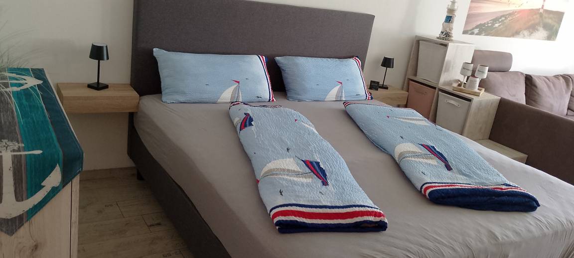 Unsere kleine Auszeit liegt im Erdgeschoss in ruhiger ,zentraler Lage von Büsum. Unweit der Familienlagune. Sie besitzt einen Schlafbereich mit bequemen Boxbett ,ein Wohnbereich mit zusätzlicher Schlafmöglichkeit ,Küche ,Duschbad. Flur, Terrasse