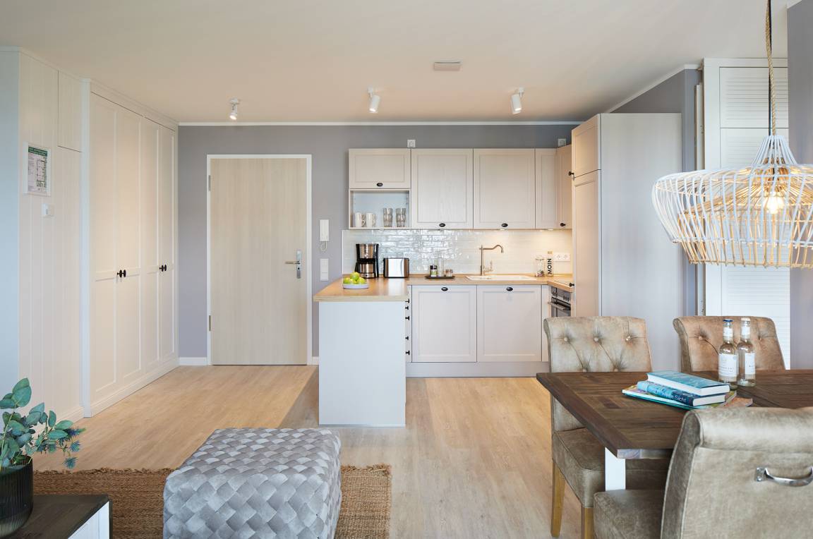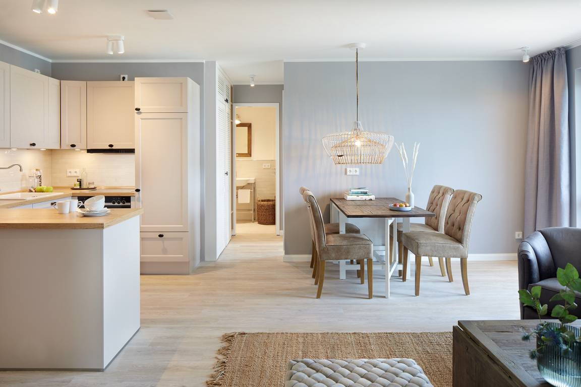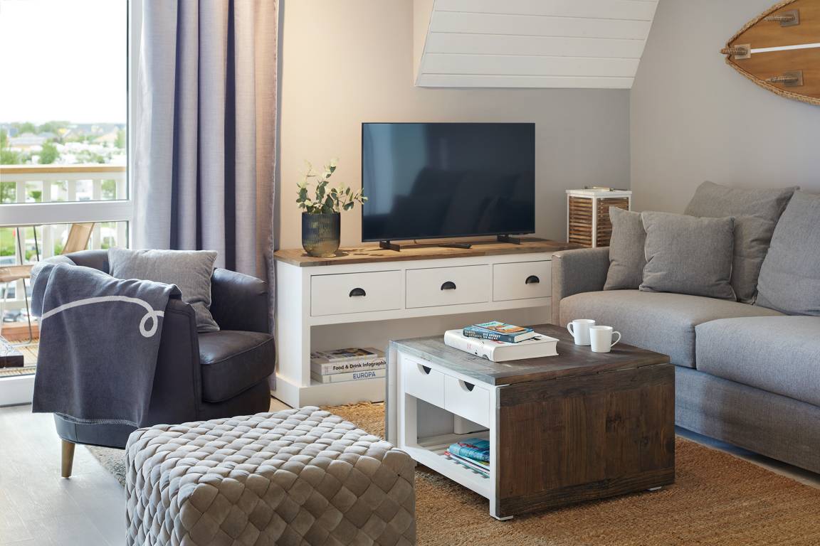 Wir finden schon, und haben das Apartment Deluxe Two Bedroom so konzipiert, dass hier bis zu sechs Personen unterkommen; die gemütliche Schlafcouch im Wohnbereich macht's möglich. Dort findet ihr übrigens auch die apartmenteigene Küche. Und durch die Platzierung zwischen den zwei Schlafräumen ist dieser Spot prädestiniert für eine wunderbare Zusammenzeit.