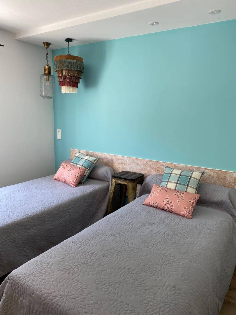 Küche, zum Wohnzimmer hin offen, 2 Schlafzimmer (1 Bett 140 cm) (2 Betten 90 cm), Bad mit Dusche.