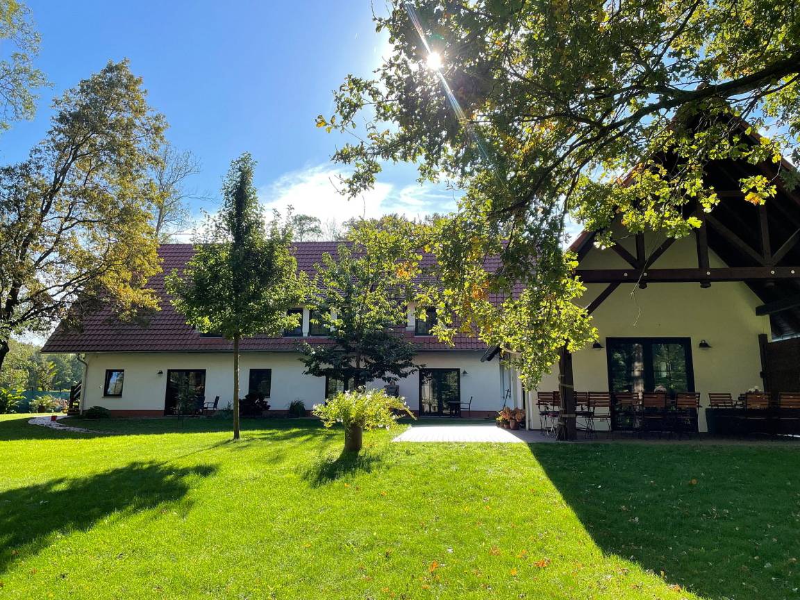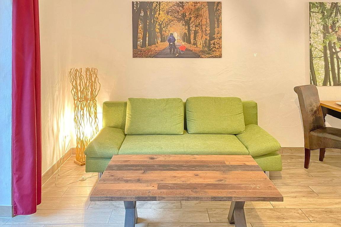 Die Ferienwohnung "Laubhütte" bietet Platz für maximal 2 Personen und befindet sich im Haus "Zum Baumhaus" im Dorf Burg. Die Wohnung verfügt über ein separates Schlafzimmer, ein Wohnzimmer mit Zugang zur eigenen Terrasse, ein großes geräumiges Badezimmer mit ebenerdiger Dusche. Die Küche ist mit einem Geschirrspüler ausgestattet. Ein Garten steht den Gästen zur Nutzung zur Verfügung.