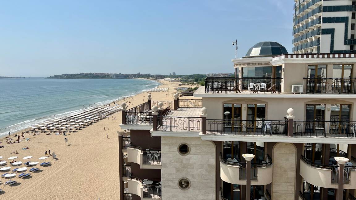Jetzt Penthouse Happy Moments in Sonnenstrand Bulgarien ,direkt am Strand buchen! Tiefen Boden Fenster(kein Balkon ) mit einen traumhaften Meerblick ,luxuriöse Einrichtung,WLAN, außen Pool, 2 TV ,Waschmaschine , Espresso Maschine!