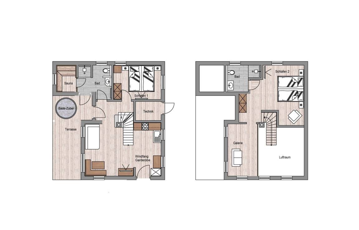 * auf der Galerie, zusätzliches Zirben-Kuschelbett und Dusche/WC