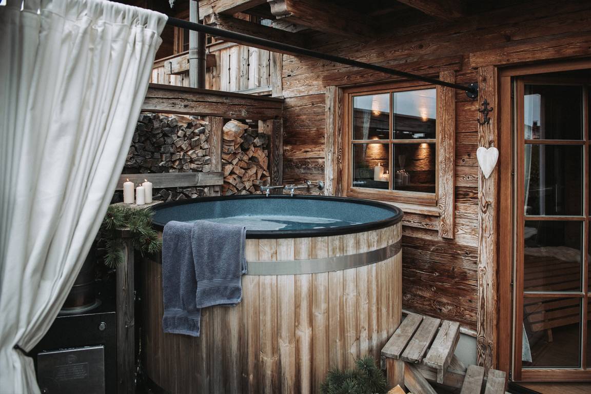 * privater Hot Pot - holzbefeuert - auf der Terrasse