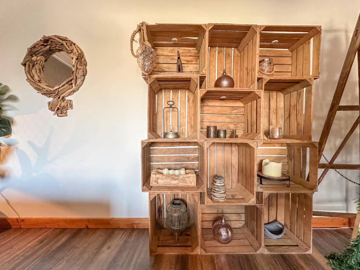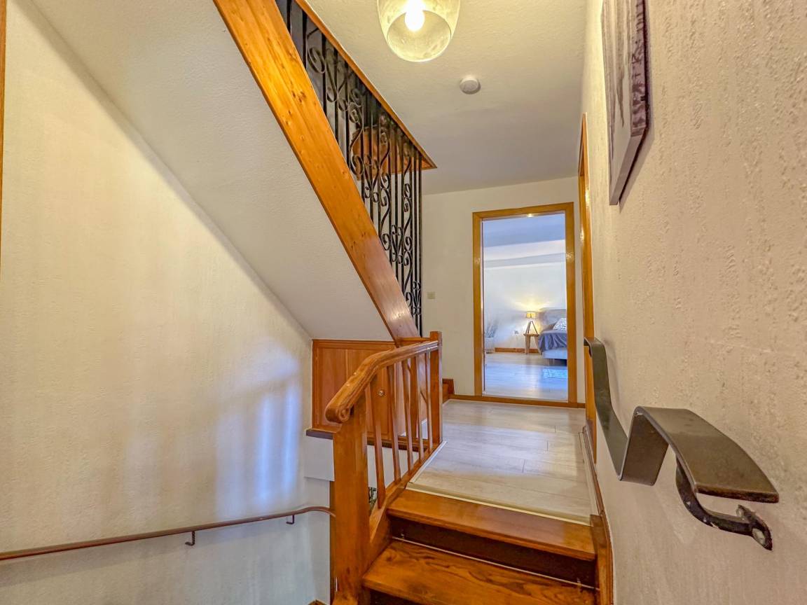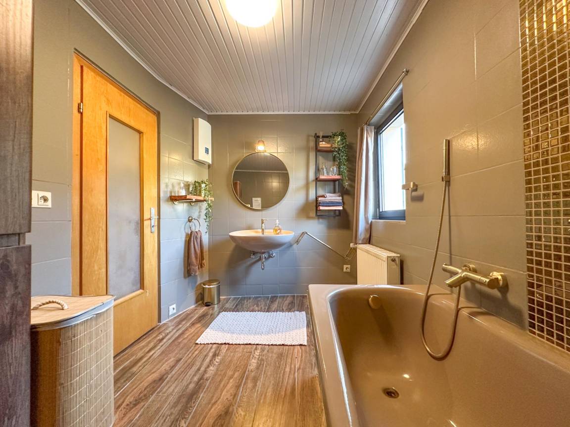 In der 1. Etage: Wohnzimmer mit TV, Sitzecke , Esszimmer mit Esstisch , Küche mit Wasserkocher, Kochherd, Dunstabzugshaube, Kaffeemaschine(Filter, senseo pads), Backofen, Mikrowelle, Geschirrspüler, Kühl-/Gefrierkombination , Schlafzimmer mit Doppelbett , Badezimmer mit Badewanne mit Dusche, Waschbecken, Toilette