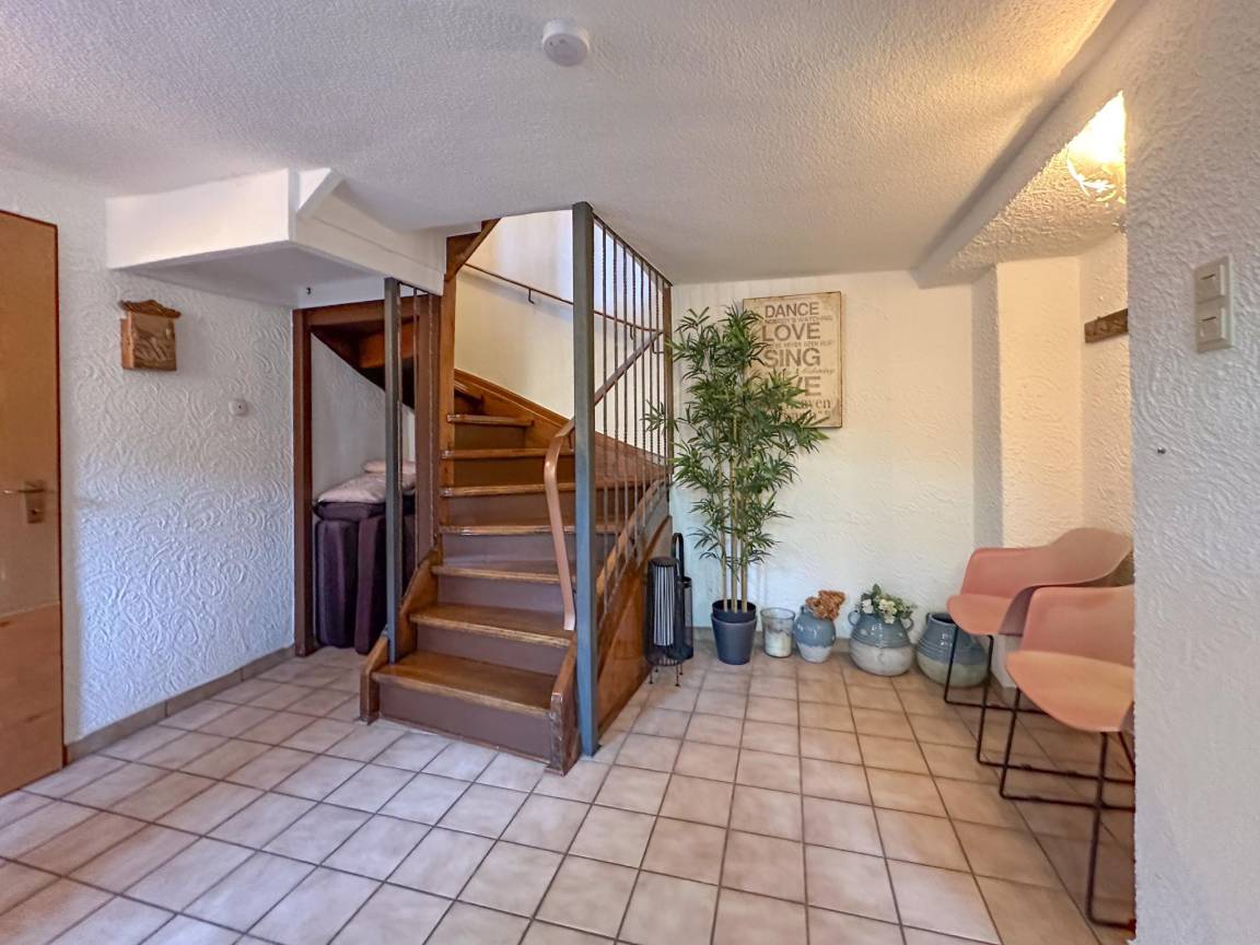Layout : Parterre: Eingang, Schlafzimmer mit Doppelbett , Abstellraum mit Wäschetrockner, Waschmaschine