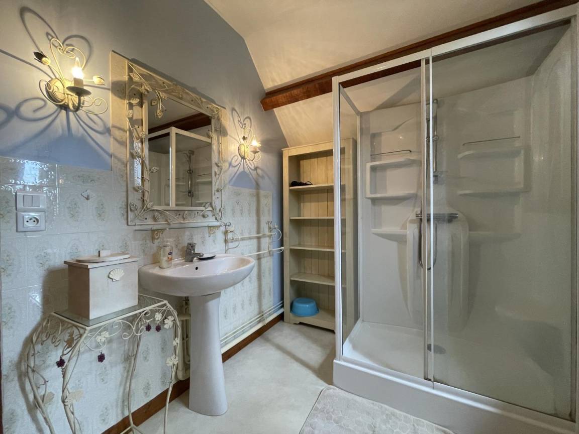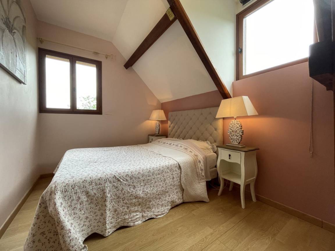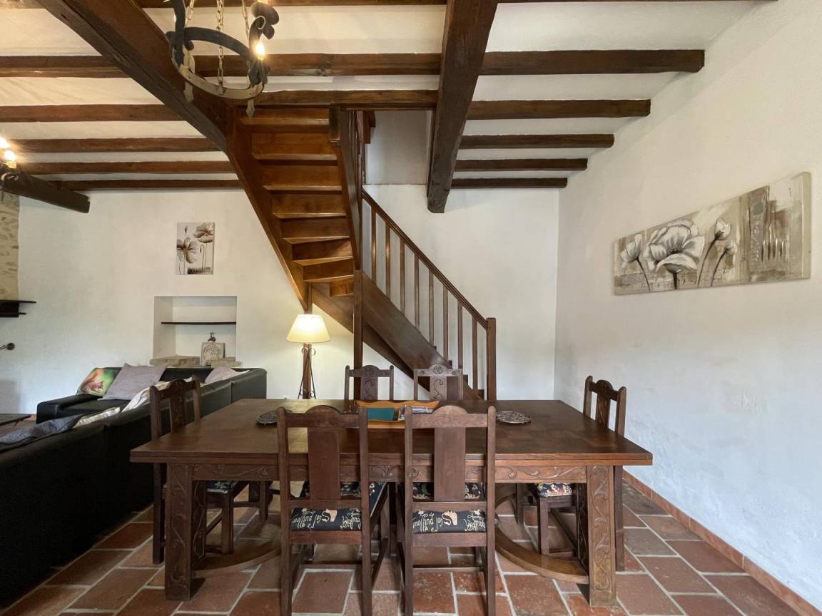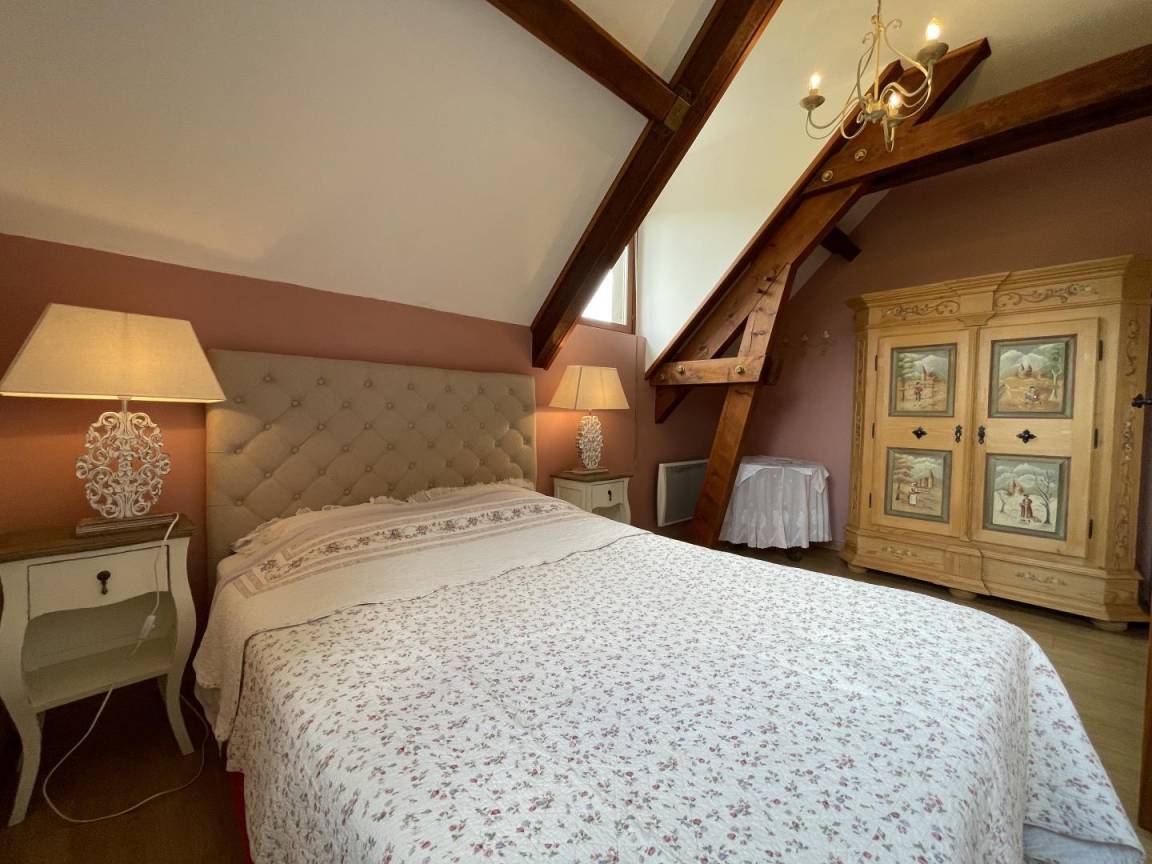 Obergeschoss: 1 Elternschlafzimmer (1 Doppelbett) + 1 Kinderzimmer im Schlafsaalstil mit 4 antiken Betten (3 Einzelbetten, 1 Doppelbett, 1 Babybett).