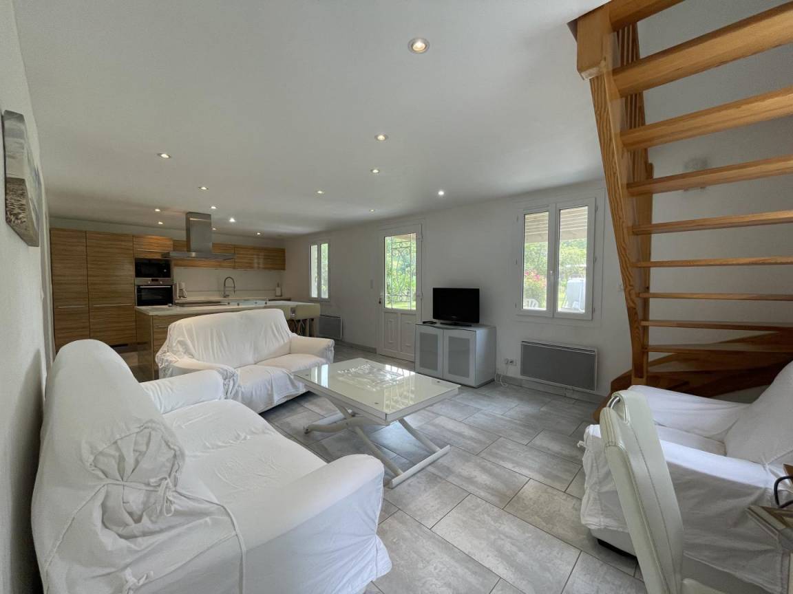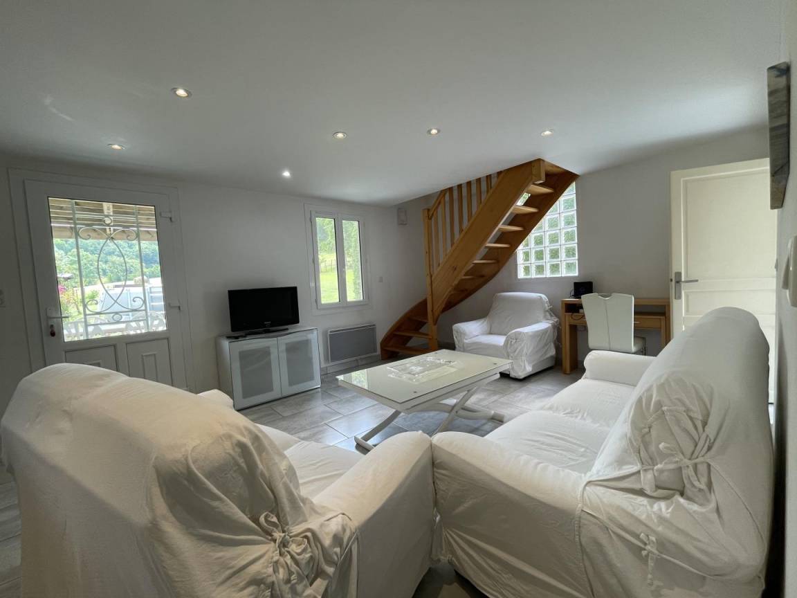 Wohnzimmer (TV, Wifi-Internetbox). 1 Schlafzimmer (1 Bett 160). Duschraum, WC. 1 Kinderbett.