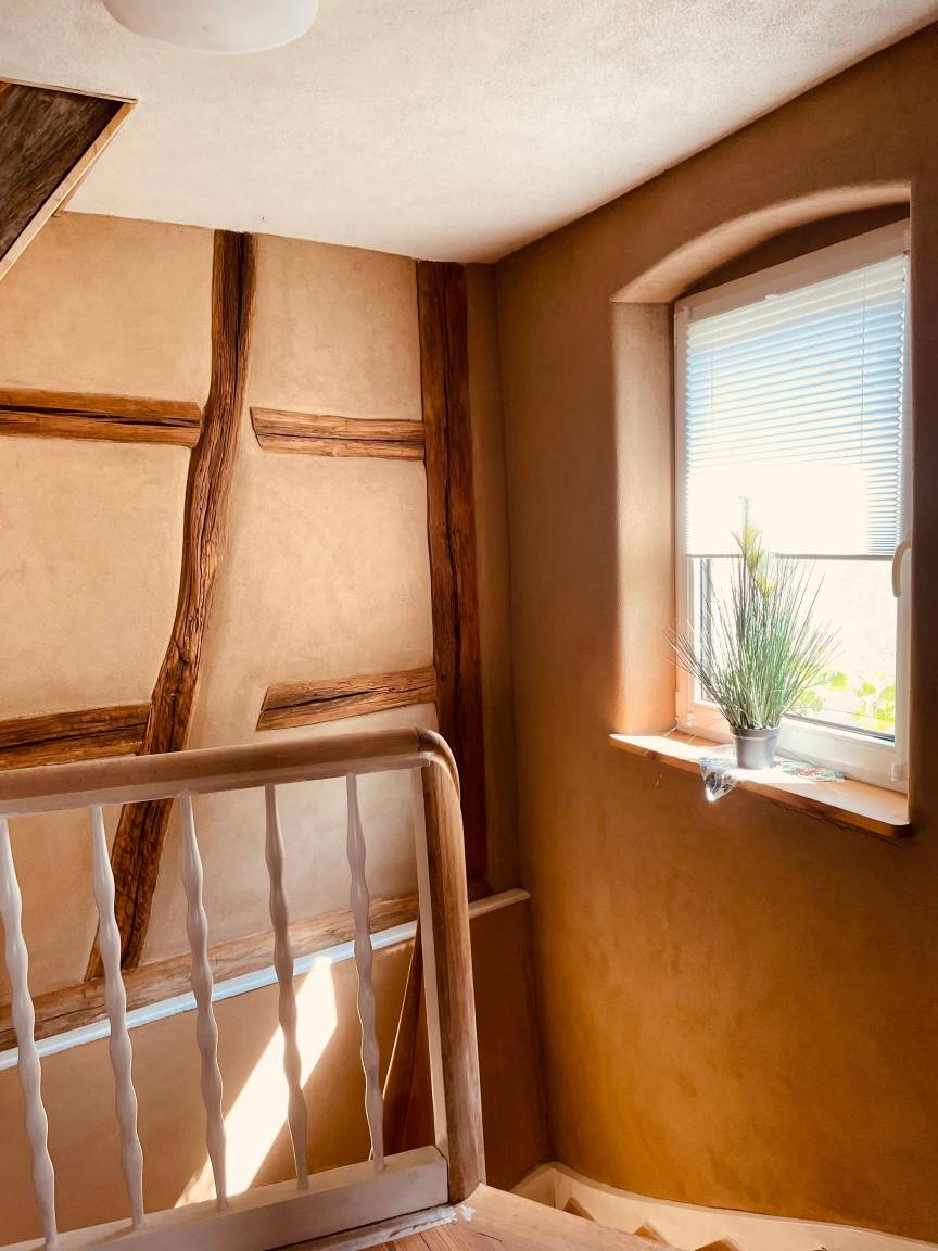 Alle Wände sind mit einer Wandflächenheizung & Lehmputz versehen, dadurch entsteht ein angenehmes & wohliges Raumklima.