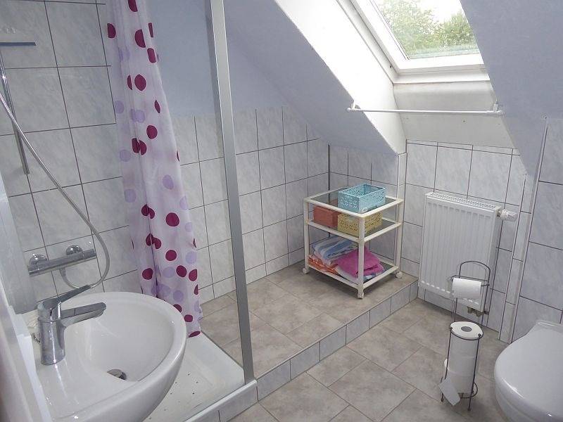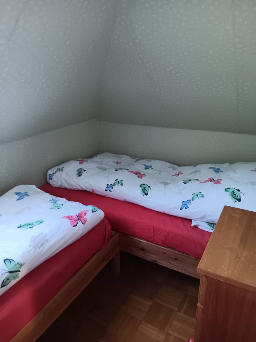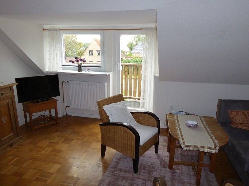 Bei der Ferienwohnung handelt es sich um eine Einliegerwohnung im Dachgeschoss eines Einfamilienhauses. Die Wohnung verfügt über eine voll ausgestattete Küche und ein Badezimmer mit Dusche und einer Waschmaschine. Im Schlafzimmer befinden sich ein ein Doppelbett und ein Schlafsofa. Zudem befindet sich in der Wohnung ein Alkoven mit zwei Betten. Die Ferienwohnung verfügt über eine offene Essdiele und ein Wohnzimmer mit einem Fernseher. Das Wohnzimmer hat Zugang zu einem kleinen Balkon.