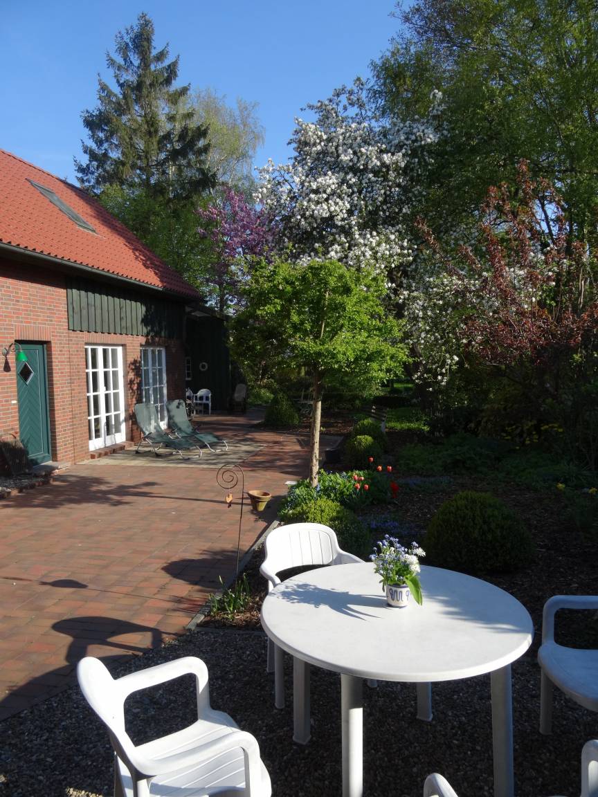 Dieses Ferienhaus liegt neben unserm zweiten Haus und ist aus einer alten Scheune entstanden und bis auf das Ständerwerk neu gebaut. es befindet sich im Ortskern vom Nordseebad Eckwarden. Im Erdgeschoss treten sie durch einen Windfang ins Haus, gleich links befindet sich das Bad mit ebenerdiger Dusche, geradeaus kommen sie in den großzügigen Wohn- und Essbereich. Die Küche ist ausgestattet mit einer Einbauküche mit Miele Geräten, Herd mit Backofen, Geschirrspüler und Kühlschrank. Der gemütlich eingerichtete Wohnbereich ist hell und lichtdurchflutet durch 2 Terrassentüren, es gibt eine SAT-TV und Stereoanlage. Eine bequeme Treppe führt in das Obergeschoss in einen offenen Schlafraum mit Doppelbett und zu einem geschlossenen Schlafraum mit zwei Einzelbetten. Vor dem Haus ist ein Parkplatz vorhanden, der große Garten mit altem Baumbestand lädt mit Liegewiese und Sitzgruppen und einem überdachten Freisitz zum Spielen und Entspannen ein. Ein Kinderbett sowie ein Hochstuhl sind vorhanden. Das Mitbringen von Haustieren ist nicht gestattet. Eine Wallbox gegen eine Kaution ist installiert. Waschmaschine / Trockner 20 Euro, Wlan inklusive.