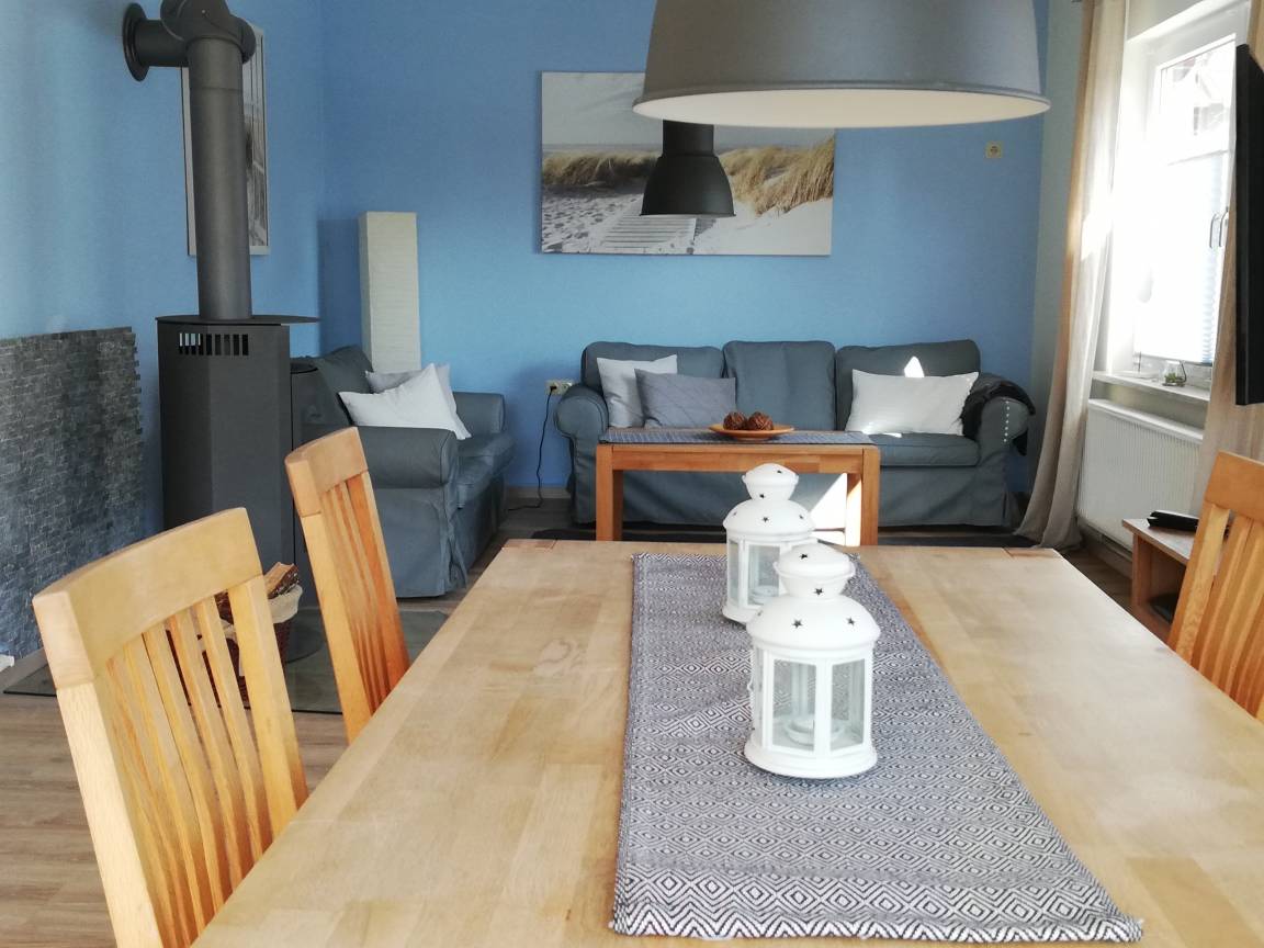Der große Wohnraum mit großen Esstisch bietet genug Platz um kulinarische Leckereien in gemütlicher Atmosphäre zu Speisen. Oder auch einen geselligen schöne Spieleabende zu verbringen.