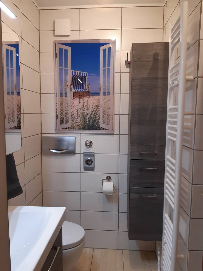 Die Küche ist modern ausgestattet mit Spülmaschine, Backofen, Herd mit Ceranfeld und üblichen Küchengeräten (Mikrowelle). Im Wohnzimmer können Sie es sich auf der Polstergarnitur gemütlich machen und dabei auf Deich und Wasser schauen. Stereoanlage, DVD-Player und Fernseher sind vorhanden. Die Wohnung ist mit WLAN ausgestattet und man braucht somit nicht auf das Internet verzichten. Im Wohnzimmer verbirgt sich in der Schrankwand ein Schrankbett mit Schlafmöglichkeit für zwei Personen, sowie einigen Fächern, die als Stauraum genutzt werden können. Das Schlafzimmer ist mit einem 1,60 m großen Doppelbett ausgestattet (2 80iger Matratzen). Der Kleiderschrank bietet ausreichend Platz. Die Wohnung verfügt über ein Duschbad, ebenerdig, auch hier können Sie Ihre Toilettenartikel alle gut unterbringen. Der große Balkon bietet ausreichend Platz zum Relaxen, Kaffeetrinken, Wein genießen.......etc. Ein Kleinkind bis 2 Jahre hat zusätzlich Platz, ein Reisebettchen kann gegen Gebühr zugebucht werden und findet z. B. Im Schlafzimmer Platz. Damit es den Kleinen in der Wohnung nicht langweilig wird, gibt es auch eine Box mit Spielsachen. Die Wohnung in dem Appartementhaus "Seestern" liegt ruhig und trotzdem zentral. Sie sind zu Fuß in 5 Minuten am Friesenstrand mit seinem tollen Abenteuerspielplatz. Etwa 10 Minuten Fußweg legen Sie bis zum Aqua Mundo (Tropisches Erlebnisbad) zurück, sowie Bäcker, etliche Gaststätten und Restaurants und Fahrradverleih. Der Supermarkt ist etwa 1,5 km entfernt.
