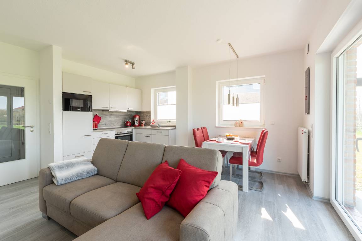 Ob Terrasse oder Balkon, hier bleiben für bis zu 4 Gäste und ein Kleinkind bis 2 Jahre keine Wünsche offen. Das moderne Reihenhaus wurde erst 2019 erbaut und ist Bestandteil einer Reihenhausanlage. Es bietet einen traumhaften Blick über die Wiesen bis zum Deich.