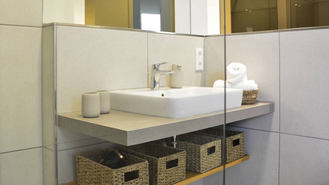 2 moderne Bäder mit bodengleicher Dusche und WC.