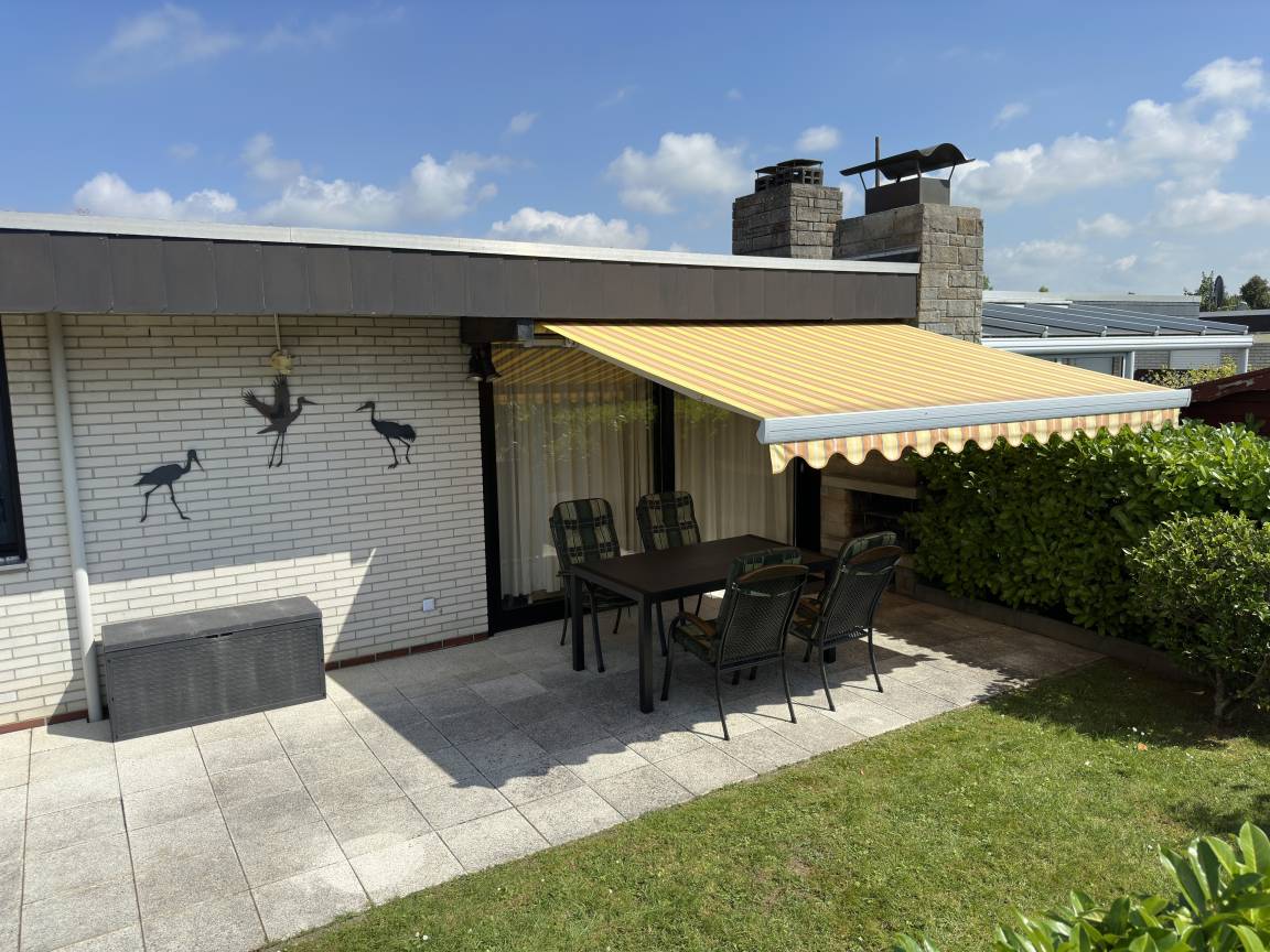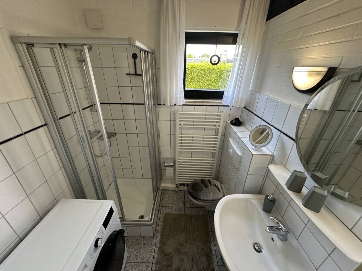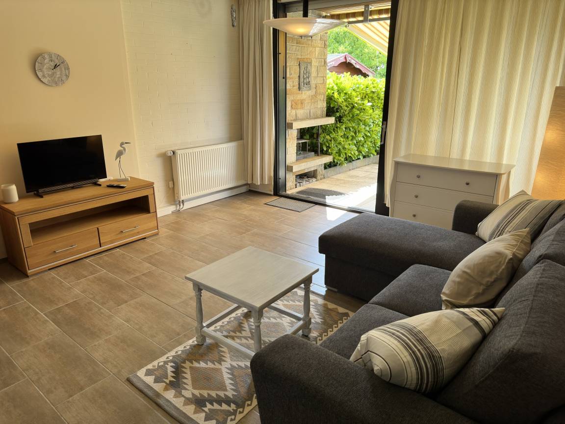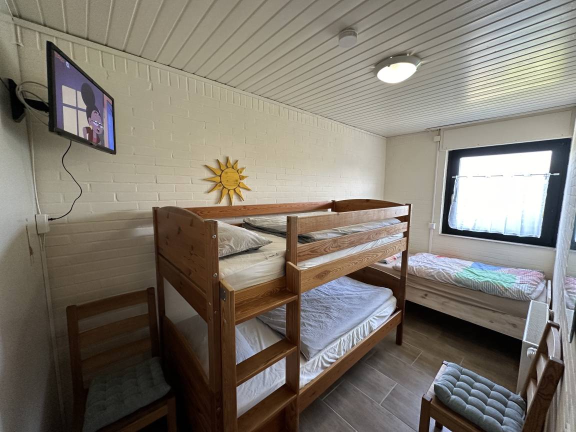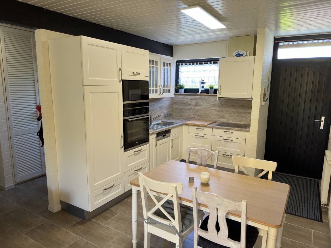 Es verfügt über ein Schlafzimmer mit Doppelbett und Kleiderschrank, ein Kinderzimmer mit Etagenbett sowie einem Einzelbett mit TV und Kleiderschrank, ein Bad mit Dusche/WC und Waschmaschine mit Trocknerfunktion sowie einen großzügigen Wohn-/Essbereich mit einer großzügigen Couch und Fernseher, einer neuwertigen, gut ausgestatteten Wohnküche (Ess- und Kochgeschirr, Backofen, Induktionskochfeld, Mikrowelle, Spülmaschine, Kühlschrank mit Gefrierfach, Wasserkocher, Toaster, Senseo-Pad und Filterkaffeemaschine). Als Wärmequelle dient eine nachgerüstete und regelmäßig gewartete Gastherme. Durch die Gasheizung ist das Haus ganzjährig bewohnbar. Eine großzügige Terrasse mit Gartenmöbeln und ein Außenkamin befinden sich auf dem ca. 200m² großen Grundstück, welches komplett eingezäunt ist und auch als Liegewiese genutzt werden kann. Zum Grillen steht Ihnen ein Außengrill zur Verfügung. Bettwäsche, Handtücher, Kinderreisebett sowie Kinderhochstuhl können gegen Gebühr bei unserer Hausverwaltung entliehen werden.