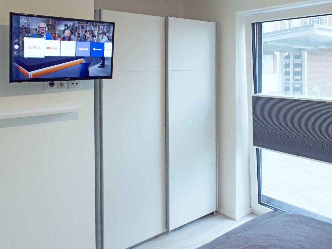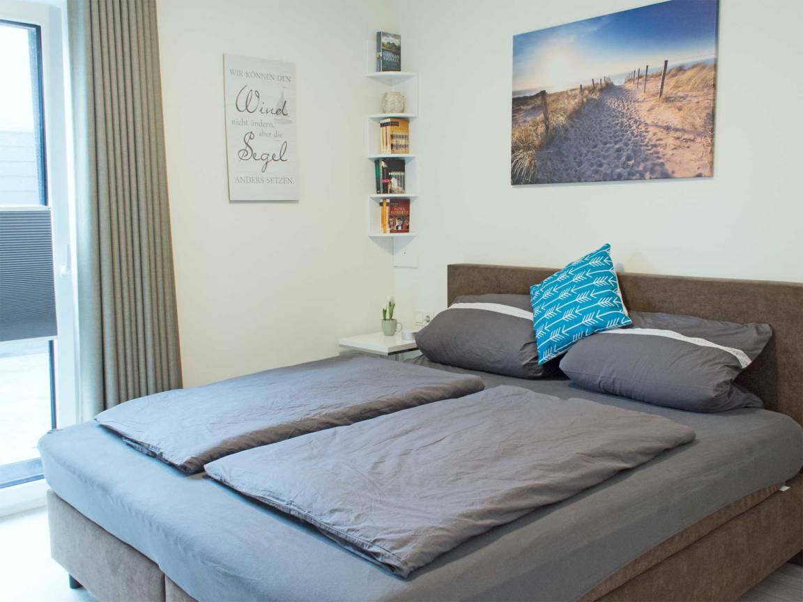 Unsere Ferienwohnung verfügt über zwei Schlafzimmer, welche mit bequemen Boxspring-Betten, einem Kleiderschrank und zusätzlichen Flachbild-Fernsehern ausgestattet sind. Verdunkelungsvorhänge und -plissees sowie Fliegengitter an Fenstern und Terassentüren bieten auch Familien mit Kleinkindern höchstmöglichen Komfort.