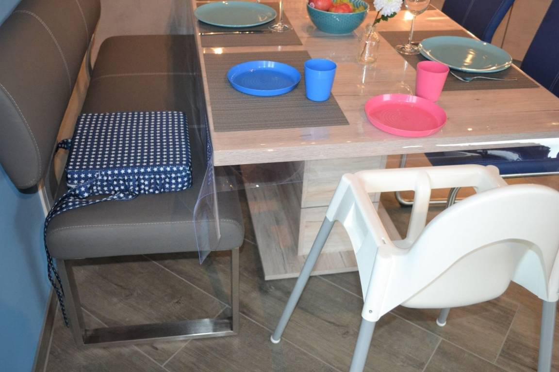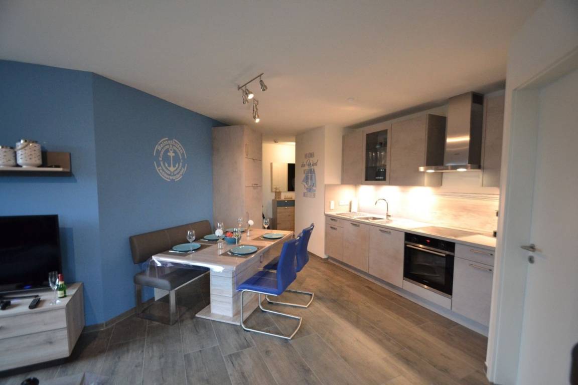 Die Ferienwohnung bietet eine voll ausgestattete Küchenzeile mit Geschirrspüler, Mikrowelle, Wasserkocher und Kaffeemaschine. Für Ihre Unterhaltung steht ein Fernseher zur Verfügung und eine Waschmaschine und ein Wäschetrockner sorgen für zusätzlichen Komfort. Für unsere kleinen Gäste stellen wir gerne ein Kinderbett und einen Hochstuhl zur Verfügung.