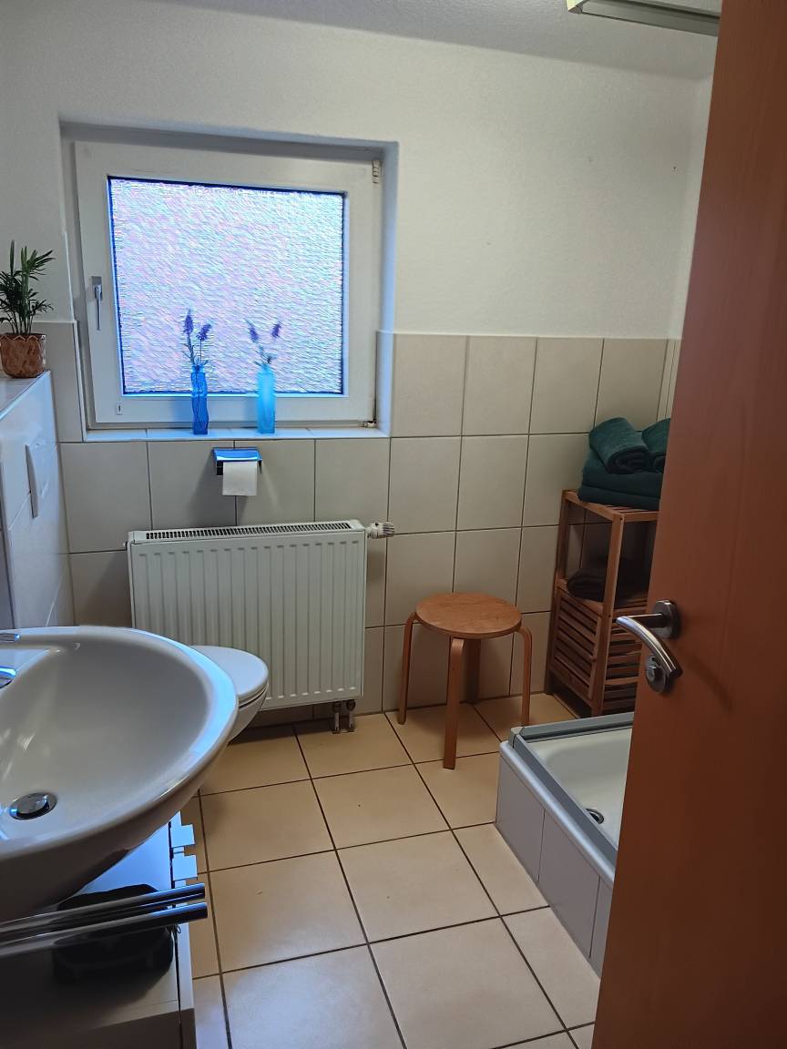 Die Ferienwohnung bietet 3 Schlafplätze, ein großes Doppelbett 180 x 200 cm und eine bequeme Schlafcouch mit Topper im Wohnzimmer. Für die ganz kleinen Gäste kann auf Wunsch ein Kinderbett und Kinderstuhl zur Verfügung gestellt werden.