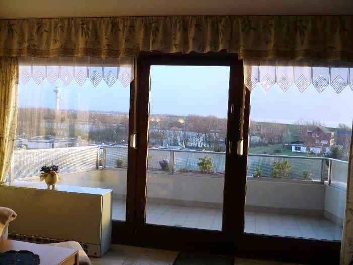 Die 52 m² große Komfort-Ferienwohnung für bis zu 4 Personen bietet Ihnen einen einmaligen Blick auf das Unesco Weltnaturerbe Niedersächsisches Wattenmeer und den Jade-Weser-Port, Deutschlands einzigen Tiefseehafen: Sie schauen zu jeder Zeit über den Deich auf die Nordsee - Meerblick pur ! Es ist eine der wenigen Ferienwohnungen an der gesamten Küste des Butjadinger Landes, von der aus Sie ohne Beeinträchtigung direkt auf das Meer schauen können.