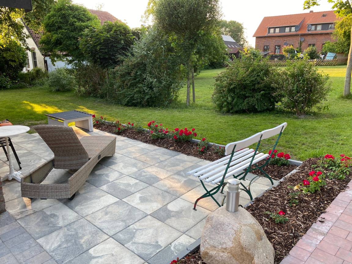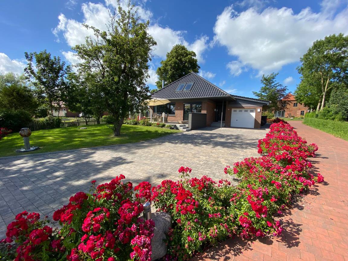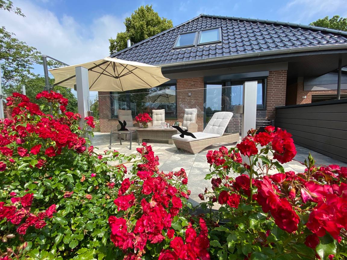 Die Außenanlage des Feriendomizils Rosenhuus macht den Unterschied: