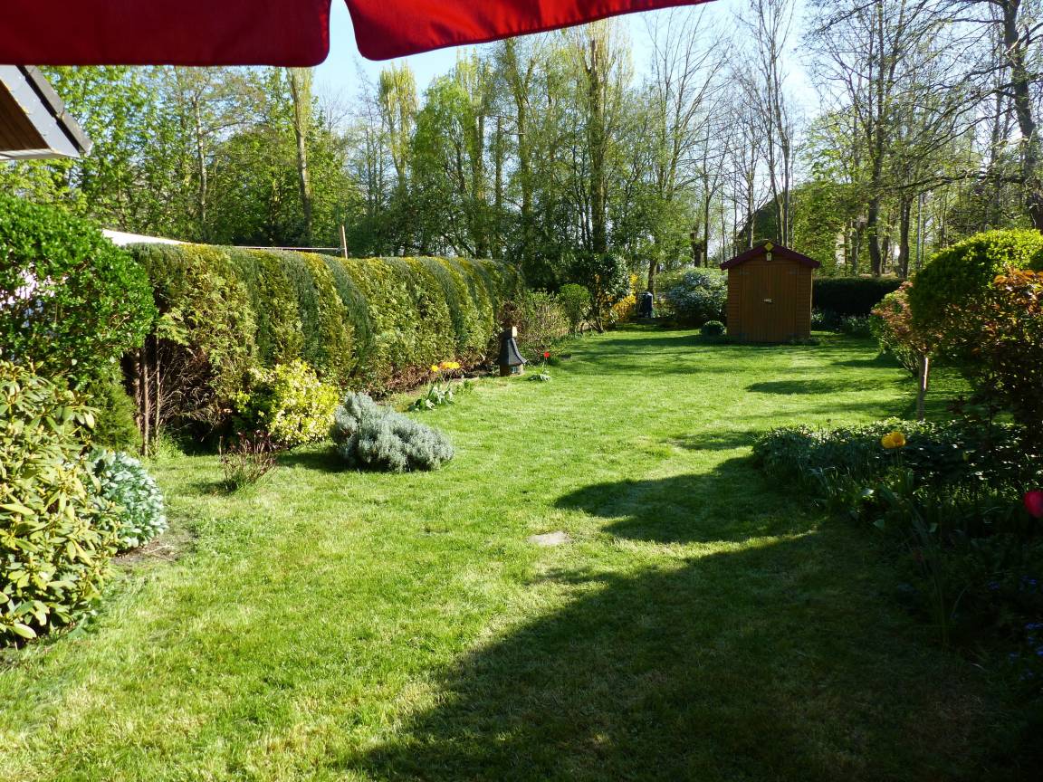gepflegter Garten mit viel Platz zum Spielen bequeme Gartenmöbel & Holzkohlegrill perfekt für Frühstück in der Sonne oder Grillabende