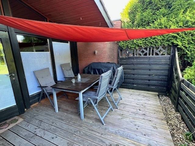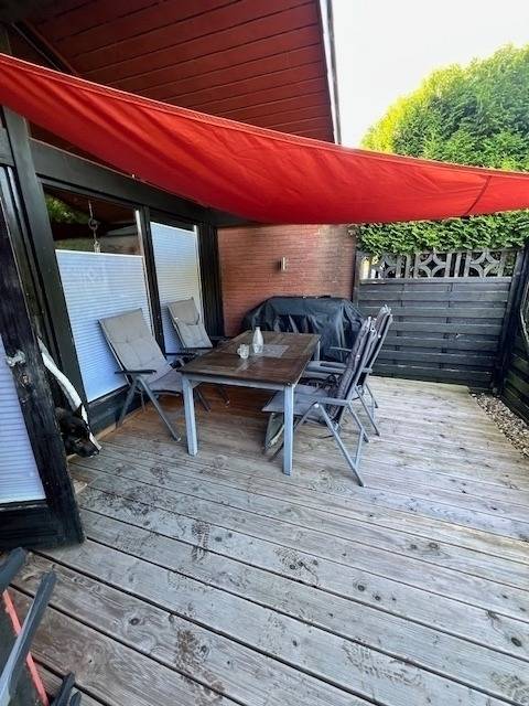 Das gemütliche Reihenhaus mit Wohlfühlcharakter. bietet eine offene, gemütliche Küche mit einem Esstisch für 4 Personen und der entsprechenden Ausstattung wie Herd, Backofen, Kaffeevollautomat, Mikrowelle, Toaster, Wasserkocher etc. Angrenzend empfängt Sie ein helles, gemütliches Wohnzimmer mit einer Sitzecke mit einem 2 - und einem 3 - Sitzer und einem gemütlichen Schaukelstuhl. Im großen Schlafzimmer befindet sich ein Doppelbett und ein großer Kleiderschrank. Im kleineren Schlafzimmer lädt ein 140 cm breites Boxspringbett zum Ausruhen ein. Neben einer Stereoanlage befindet sich im Wohnzimmer ein 55 Zoll - TV, im kleineren Schlafzimmer befindet sich ein Fernseher, mit dem man online - Programme streamen kann. Eine große, holzgedeckte Terrasse mit entsprechenden Möbeln bietet die Möglichkeit, sich bei schönem Wetter geschützt auszuruhen, der Garten ist mit einer Hecke umgeben, die einen guten Sichtschutz bietet. Bereits im Frühling kann man hier wunderbar die Sonne genießen. Ein Grill steht zur Verfügung, hier kann man wunderbare, entspannte Abende verbringen und mal so richtig entspannen. Lust, etwas zu lesen? Dann nehmen Sie sich einfach den Schaukelstuhl im Wohnzimmer oder bei schönem Wetter eine Liege im Garten, machen es sich bequem und lassen den lieben Gott einen guten Mann sein! Das Haus ist mit 2 Nachtspeicheröfen ausgestattet. Bei kühleren Temperaturen sorgen sie für eine wohlige Wärme im Haus. Ein Kleinkind bis zum 3. Geburtstag kann im Kinderbett schlafen, ein Hochstuhl ist auch vorhanden. Das Mitbringen von maximal 2 Hunden ist gegen Gebühr erlaubt, Wäschepakete können gegen Gebühr entliehen werden. Ihr Auto kann kostenfrei direkt vor dem Haus geparkt werden. Fußläufig ist in 10 Minuten der Hafen zu erreichen, dort werden dort noch Krabben angelandet, mit etwas Glück können diese dann auch direkt vom Kutter gekauft werden. Im Hafen gibt es auch einladende Gastronomie, da ist für jeden was dabei. Größere Einkaufsmöglichkeiten gibt es im 2 km entfernten Burhave.