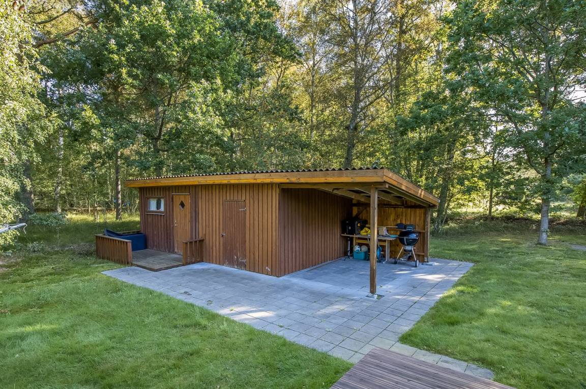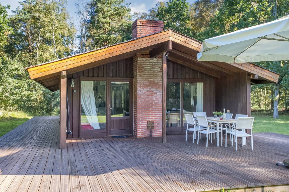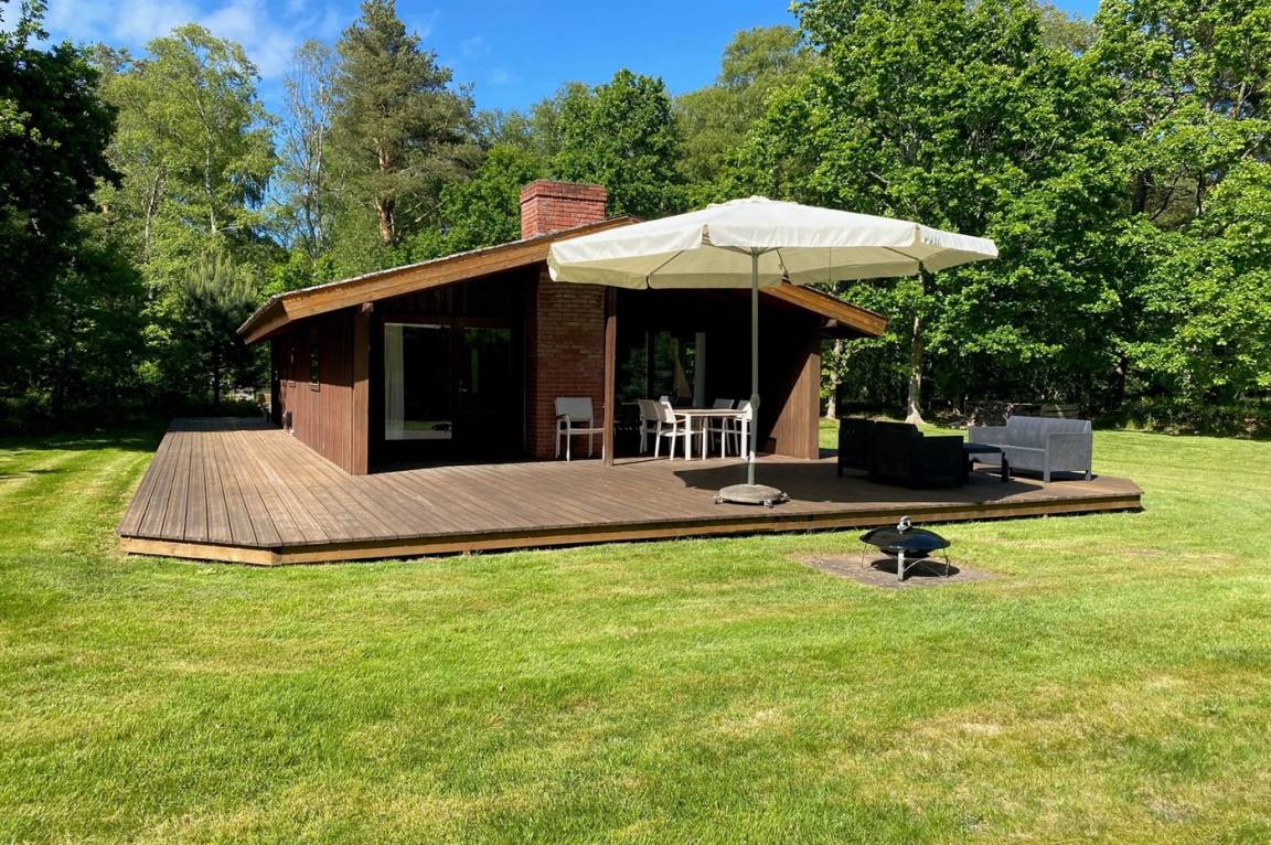 DraußenDie Ferienunterkunft liegt auf einem 5000 m² großen Naturgrundstück. Die Entfernung zum Meer beträgt 5000 m. Die nächste Einkaufsmöglichkeit liegt 1500 m entfernt. In einem Abstand von 6000 m gibt es einen Golfplatz. Es steht ein offenes Terrassenareal zur Verfügung. Außerdem gibt es überdachte Terrasse. Geräteraum.Lagerfeuerstelle.An Sommerabenden sorgt der Außenkamin für eine gemütliche Atmosphäre. Es steht ein Grill zur Verfügung. Parkplatz auf dem Grundstück.