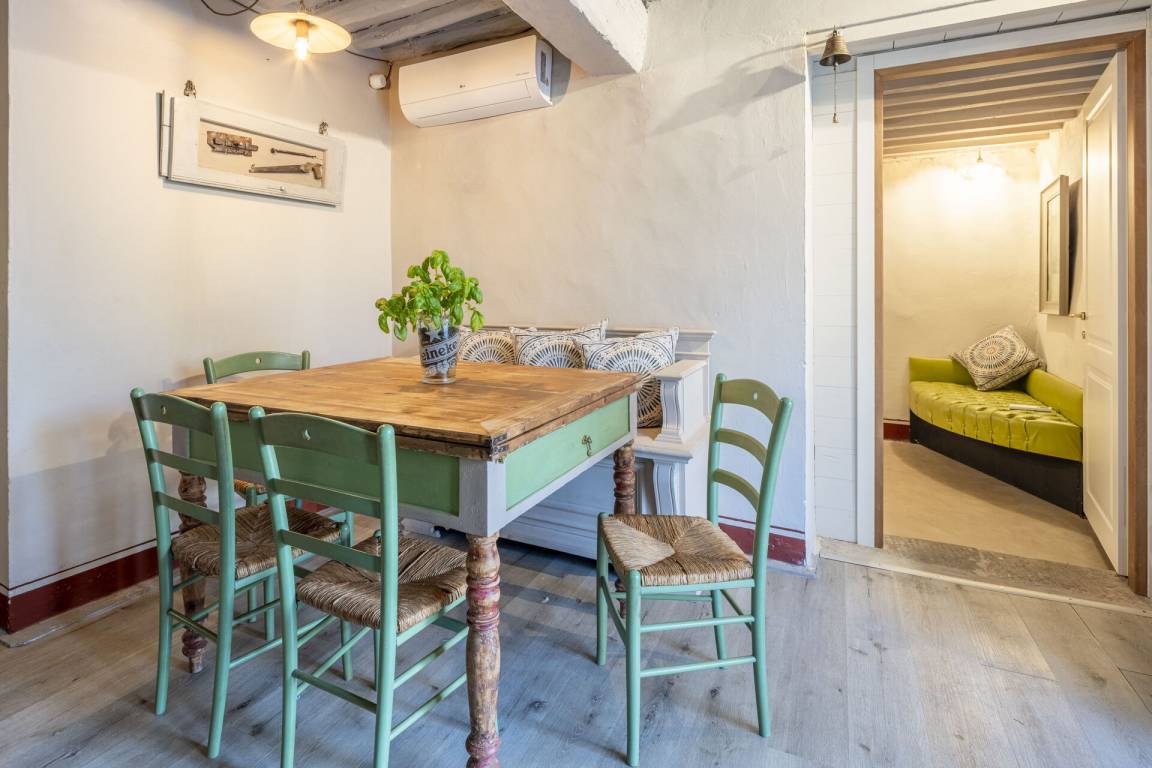 Esszimmer: Esstisch, Klimaanlage, WiFi Internet, Kamin, Ausgang auf den Garten.