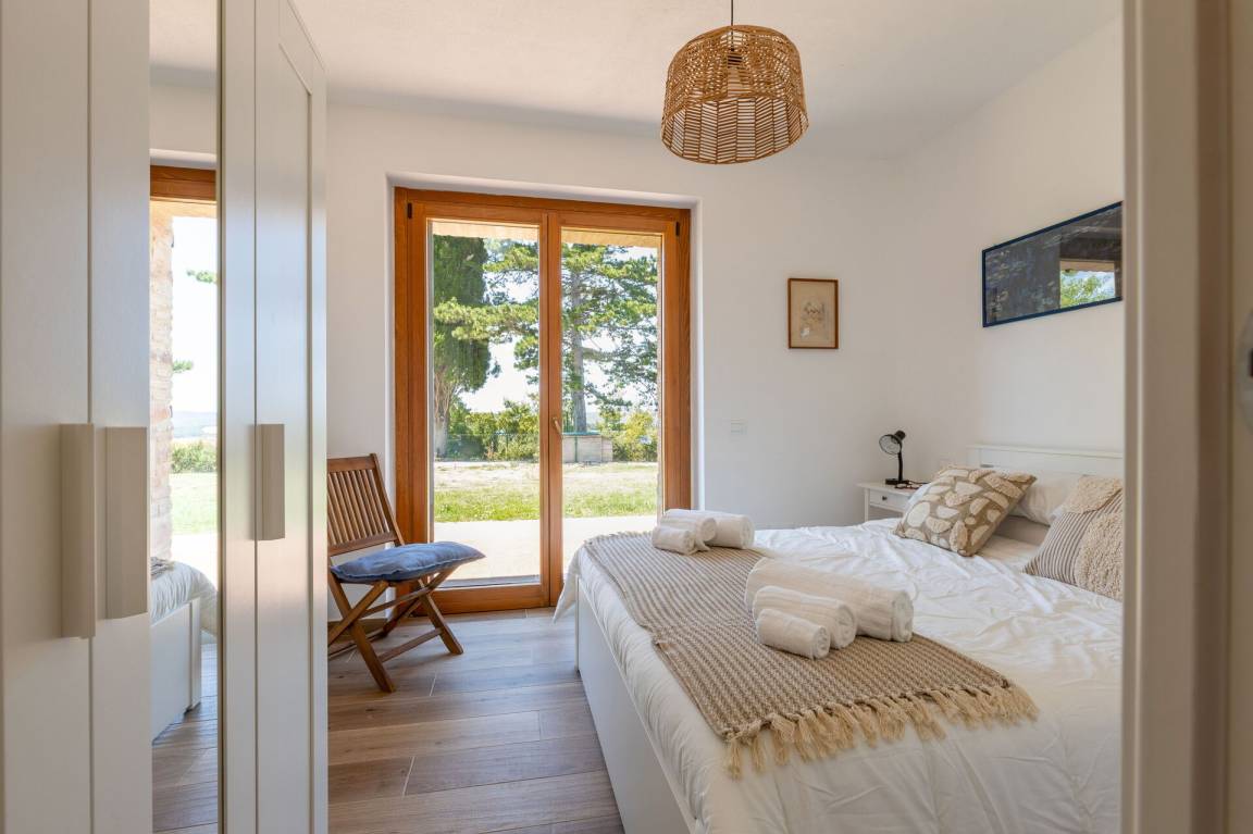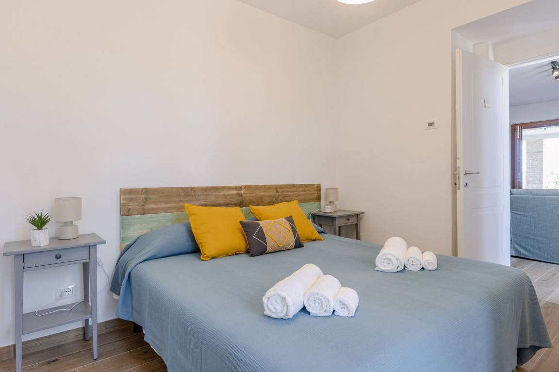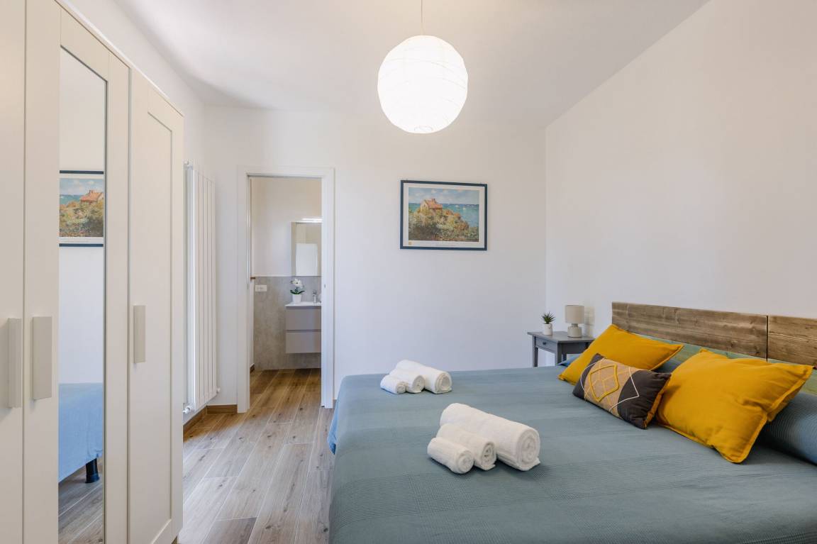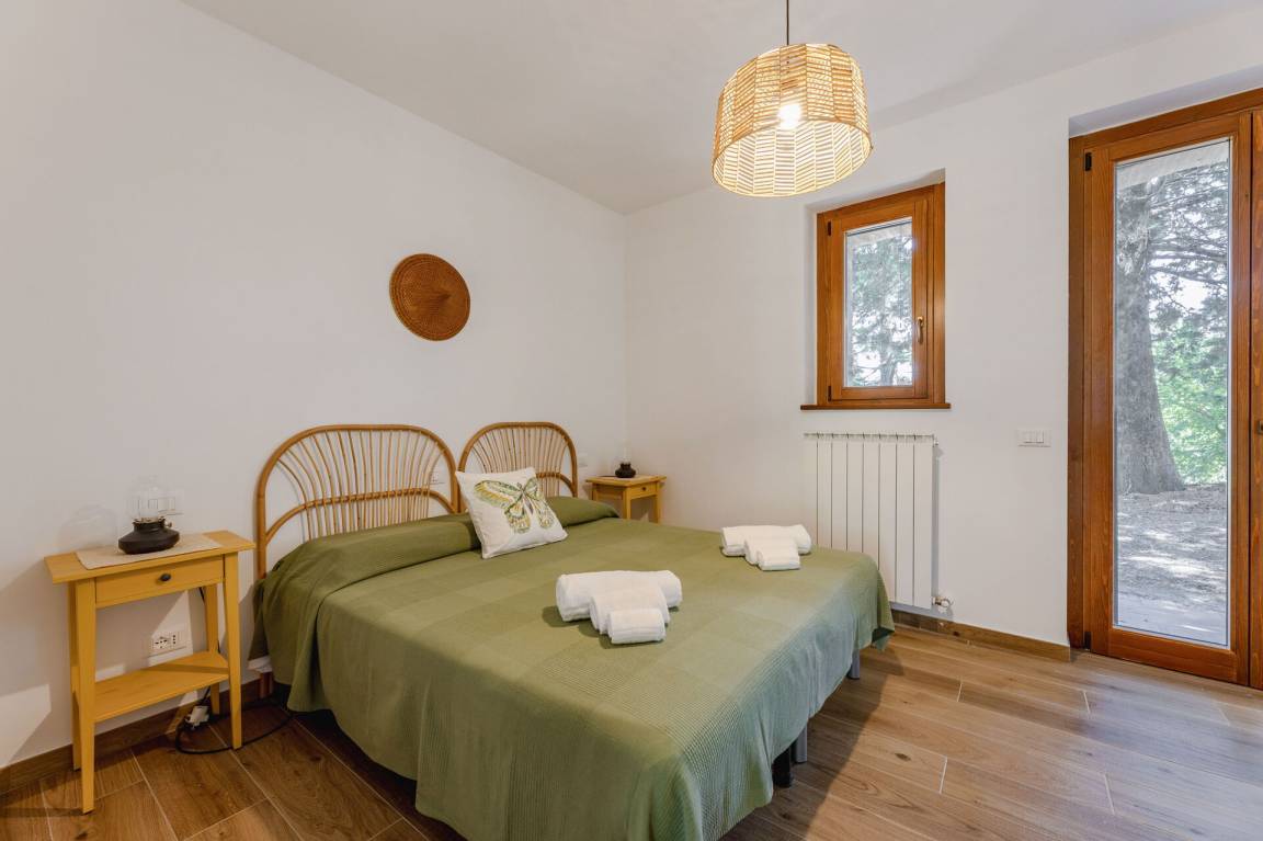 Schlafzimmer mit Bad 2: Doppelbett, WiFi Internet, Waschbecken, WC, Bidet, Dusche.
