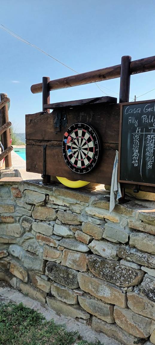 Entspannen am Pool, lesen in der warmen Sonne. Gleichzeitig sportlich aktiv: Bocciabahn, Kleinfeldtennisplatz und eine Dartscheibe dürfen gern genutzt werden.