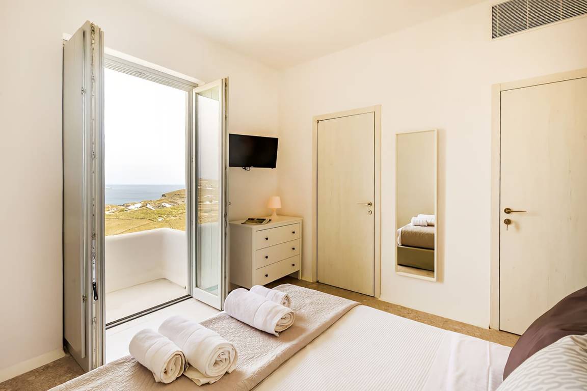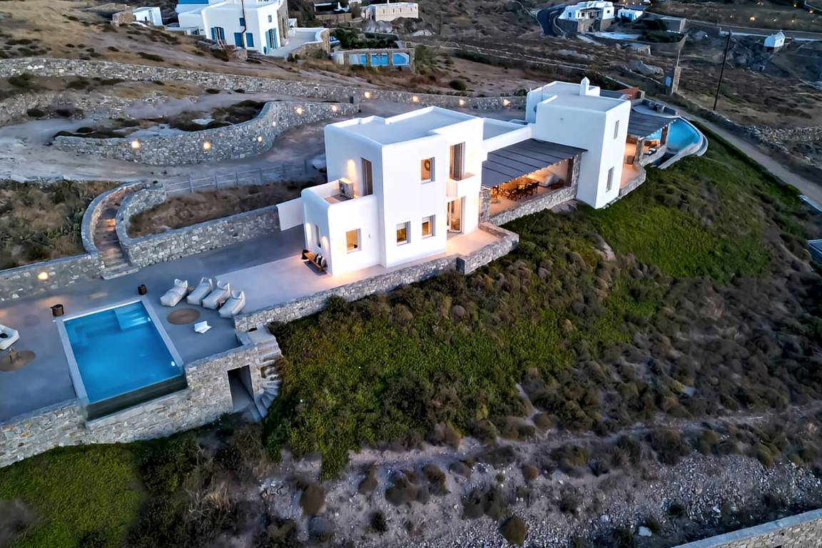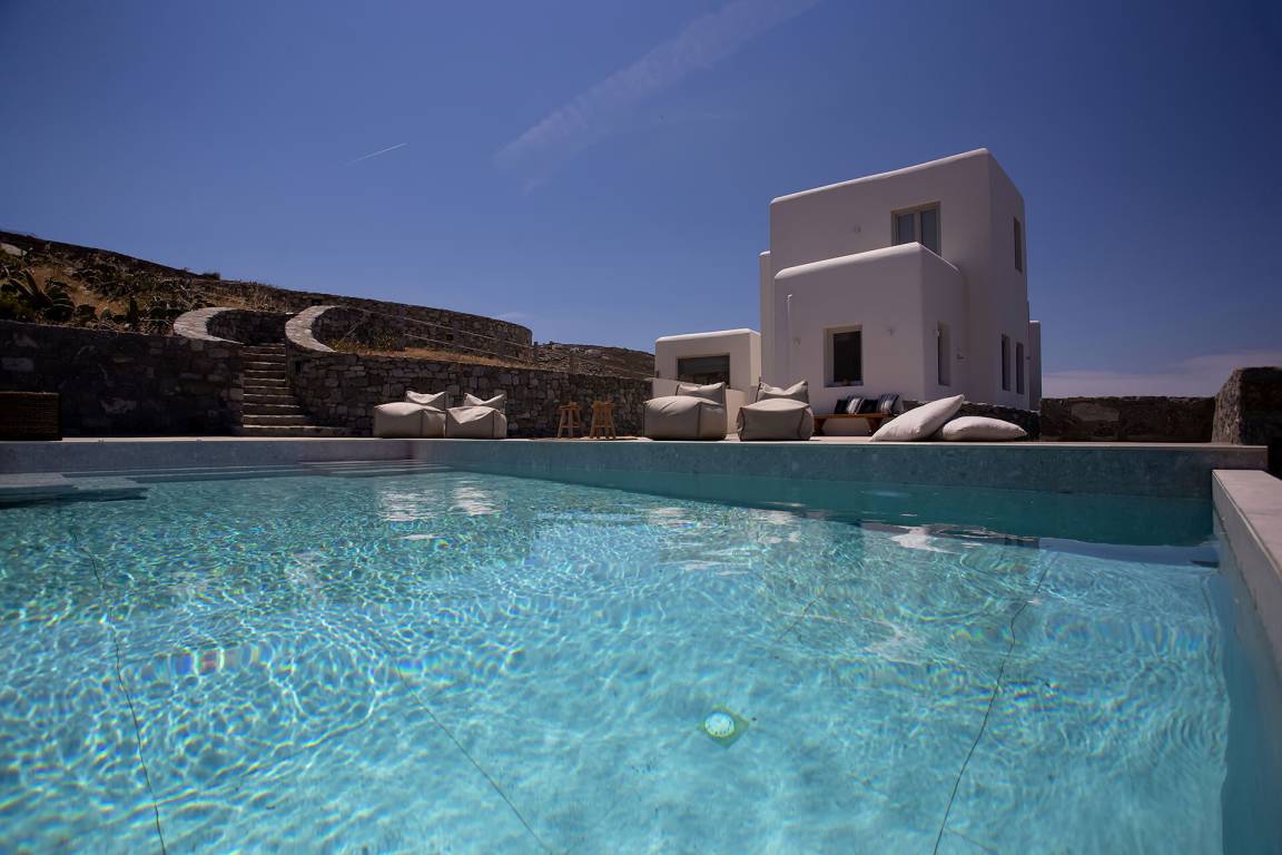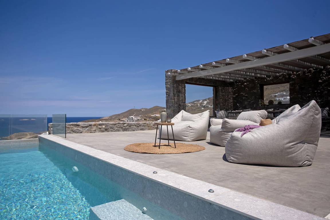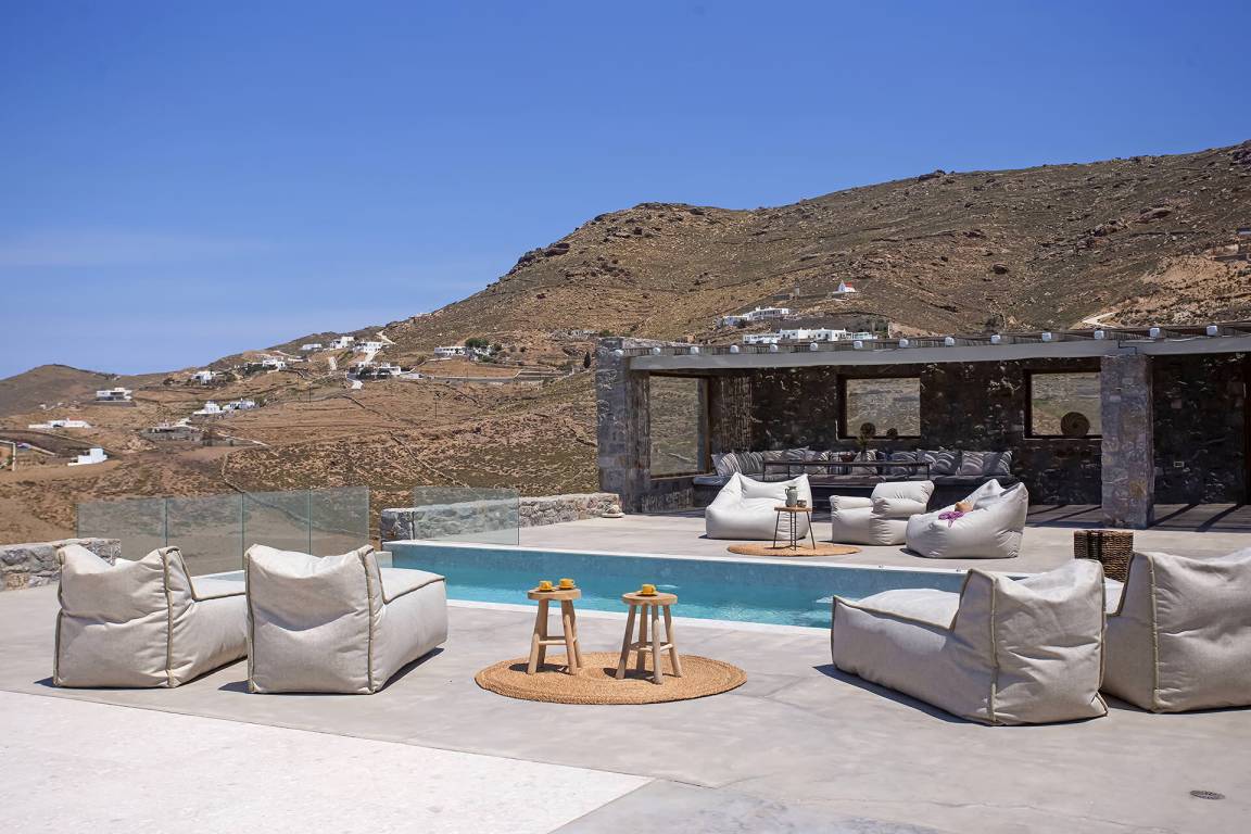 Die Villa auf Mykonos bietet Platz für bis zu 7 Gäste und verfügt über 3 Schlafzimmer und 3 Bäder. Die Räumlichkeiten sind so gestaltet, dass Wohn-, Ess- und Schlafbereiche natürlich ineinander übergehen.