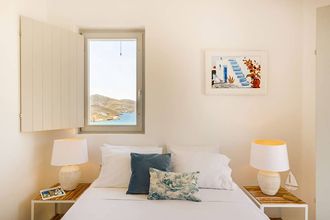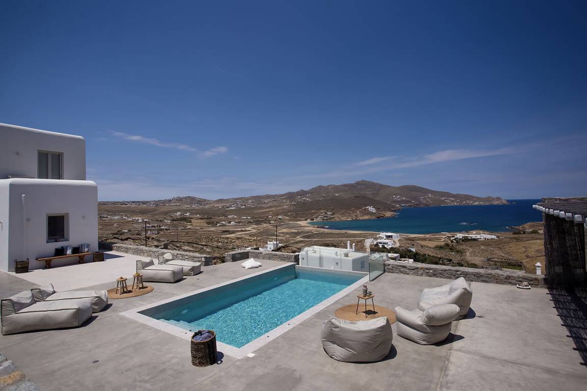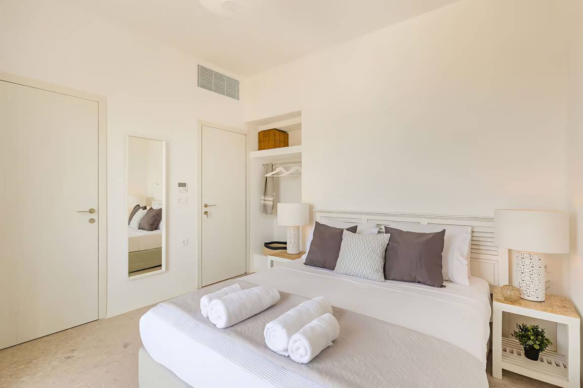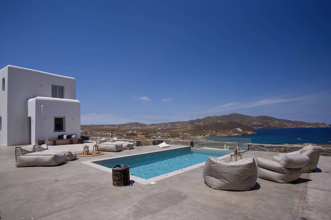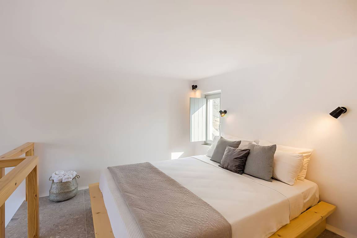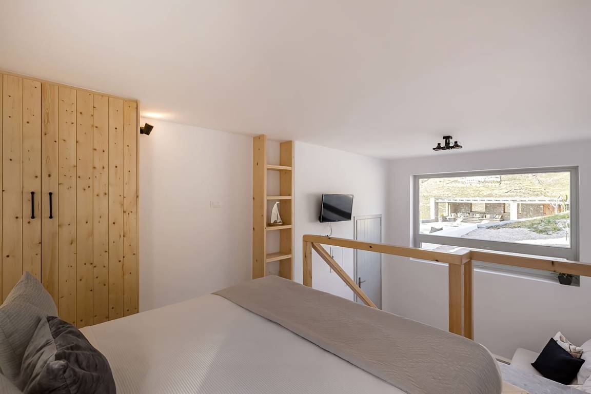 Die Villa auf Mykonos bietet Platz für bis zu 7 Gäste und verfügt über 3 Schlafzimmer und 3 Bäder. Die Räumlichkeiten sind so gestaltet, dass Wohn-, Ess- und Schlafbereiche natürlich ineinander übergehen.