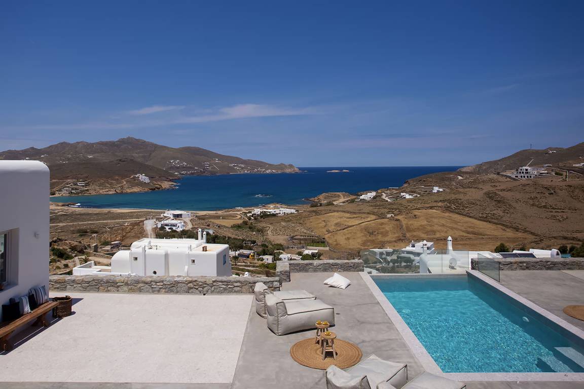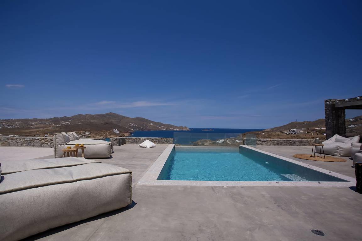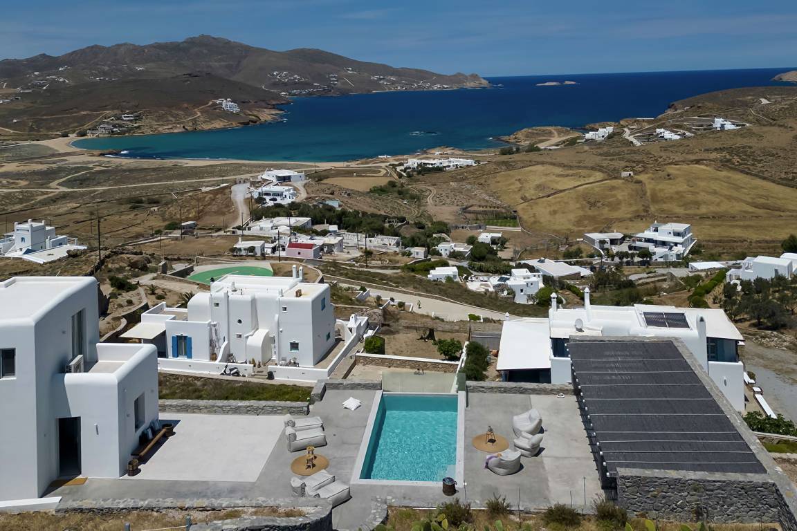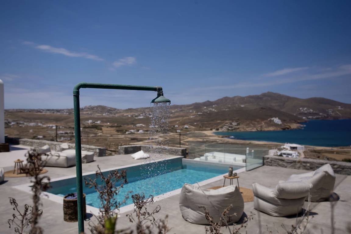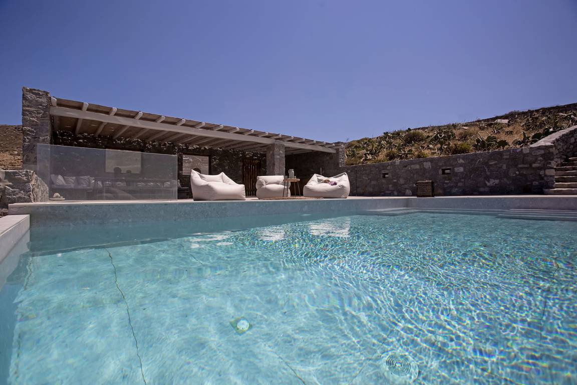 Die Villa auf Mykonos bietet Platz für bis zu 7 Gäste und verfügt über 3 Schlafzimmer und 3 Bäder. Die Räumlichkeiten sind so gestaltet, dass Wohn-, Ess- und Schlafbereiche natürlich ineinander übergehen.