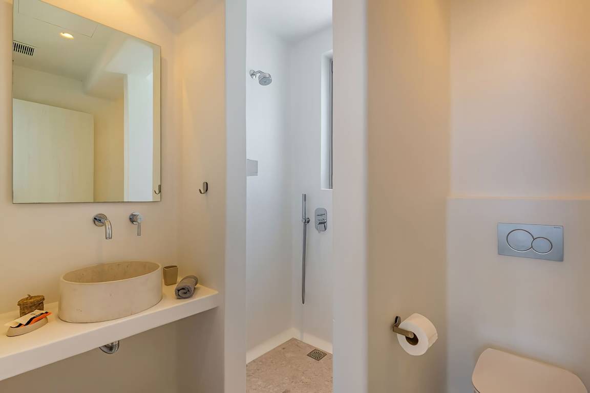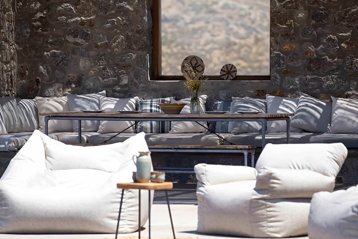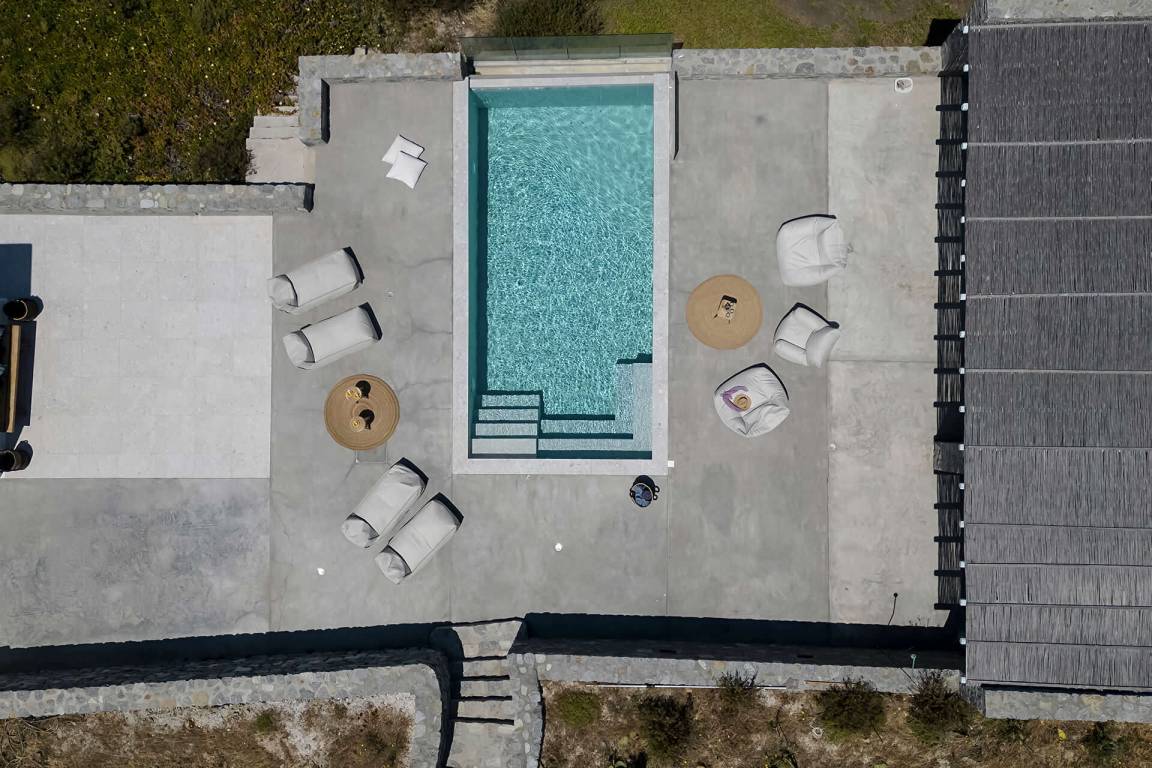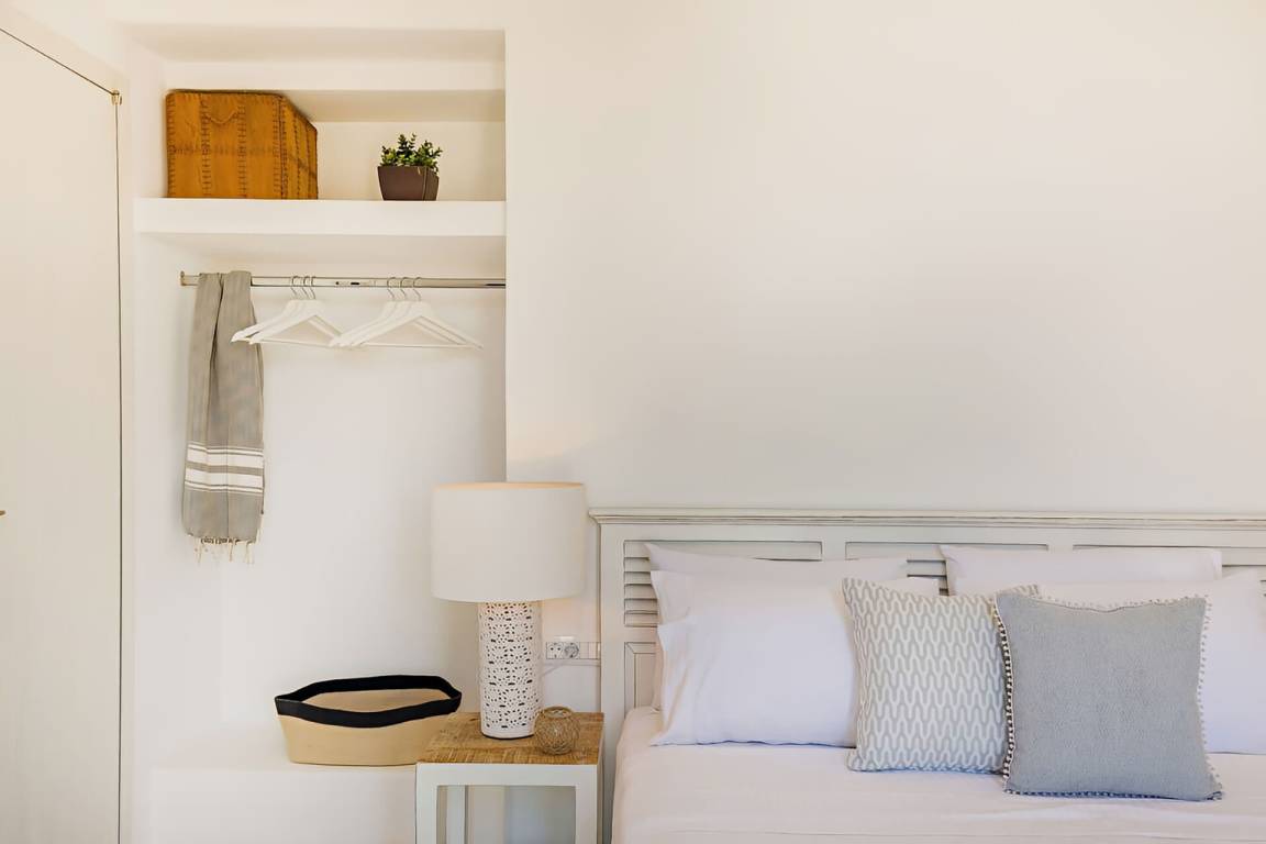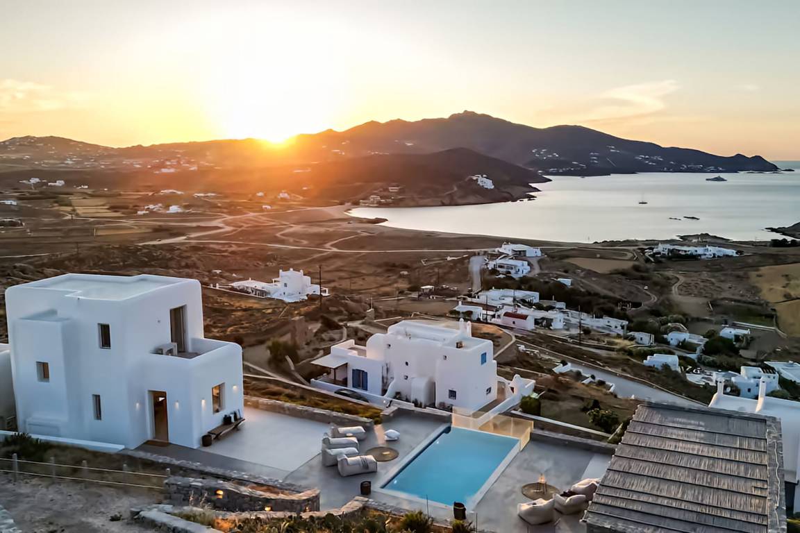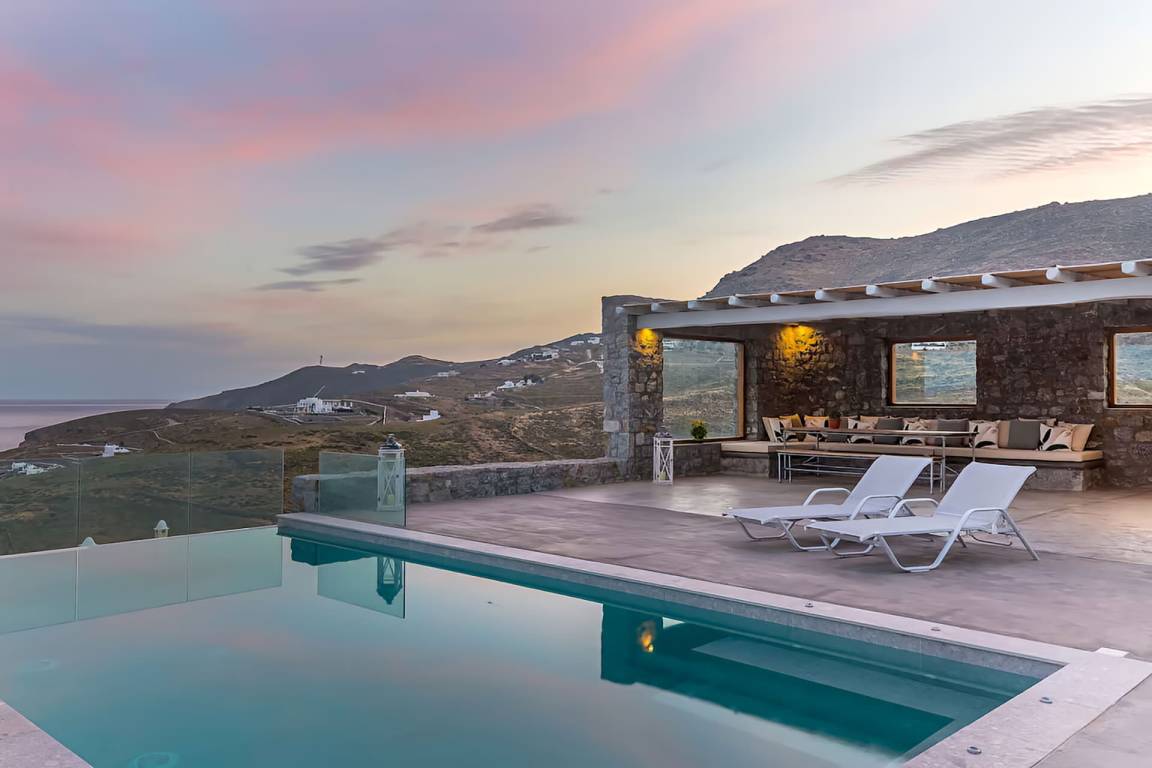 Die Villa auf Mykonos bietet Platz für bis zu 7 Gäste und verfügt über 3 Schlafzimmer und 3 Bäder. Die Räumlichkeiten sind so gestaltet, dass Wohn-, Ess- und Schlafbereiche natürlich ineinander übergehen.