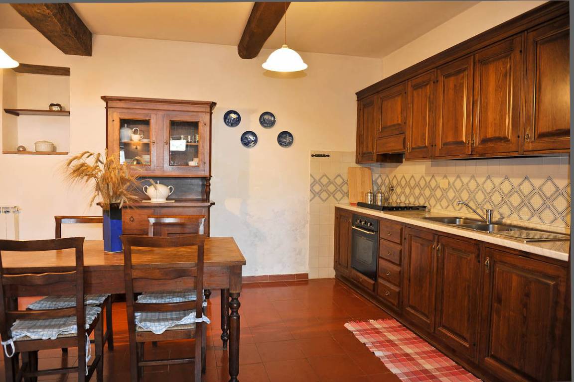 Erdgeschoss: Grosse Küche mit Essbereich, Doppelzimmer mit Ehebett, Doppelzimmer, Bad mit Badewanne.
