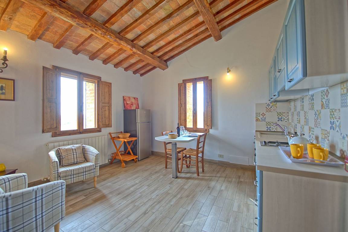 „A set of apartaments from refurbishing of old rural buildings, really inside the beautiful landscape of "Crete" area nearby Siena (15 min.) . A very well kept garden and a swimming pool help the rest after tours in the many sites of interest in the surrounding.“