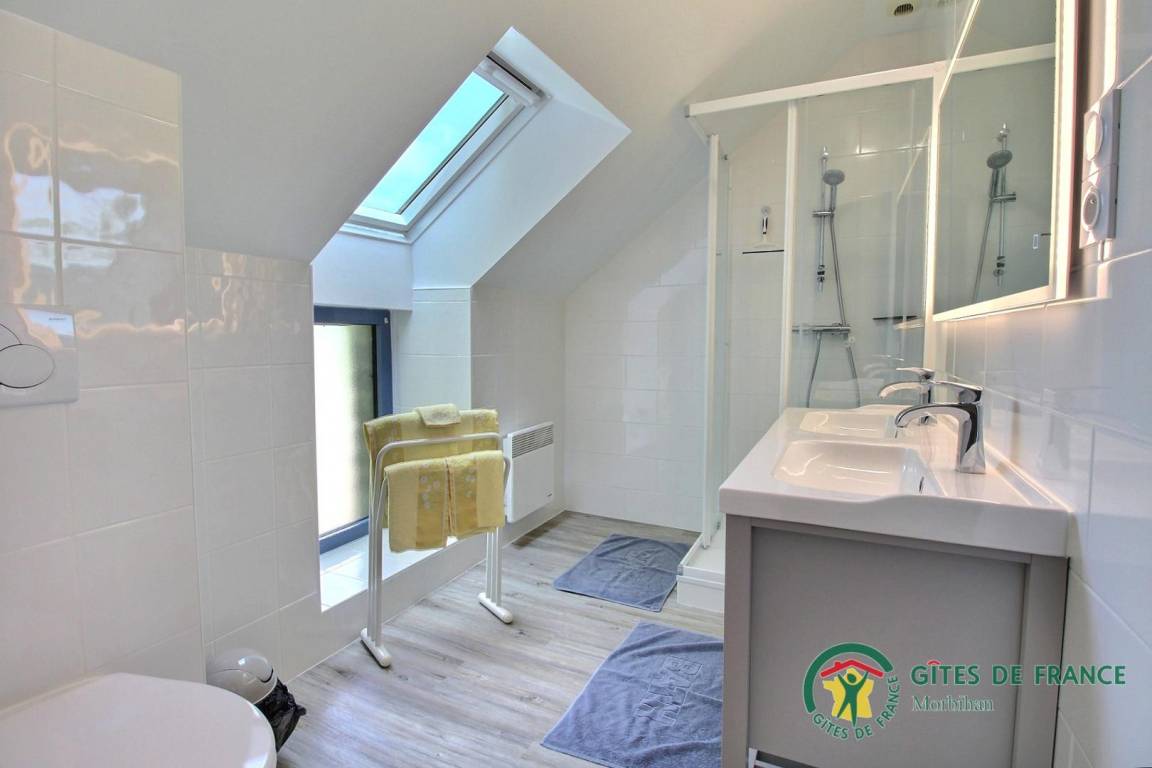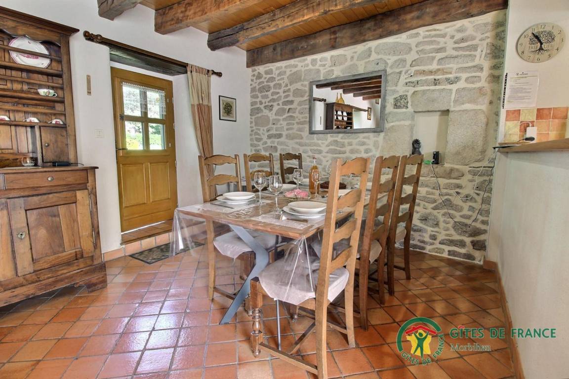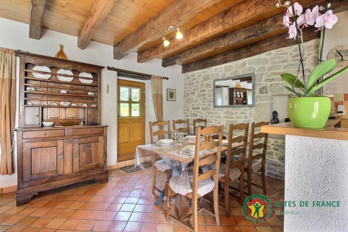 Caden liegt östlich der Strecke Vannes - Redon. Vannes 40 km, Redon 18 km. Küstengebiet 22 km. Wunderschöne Spaziergänge. Willkommen in der Süd-Bretagne, Vannes und Golf von Morbihan 30 Min, Rochefort-en-Terre ist nur ein paar km vom Haus entfernt. Kunst- und Architekturschätze in Questembert, Malansac, La Vraie Croix (besonders reicher Blumenschmuck) und Rochefort-en-Terre (Tourismus-Label: Village fleuri, Petite Cité de Caractère, Plus Beaux Villages de France). Ferienhaus auf dem Bauernhof, ruhige Umgebung im Grünen, bis zum Meer sind es 22 km. Wer eine typisch bretonische Unterkunft sucht: dieses Ferienhaus gehört zu einer Häusergruppe von 4 aneinander anliegenden Ferienhäusern auf einem Landwirtschaftsbetrieb. Erdgeschoss: Wohnbereich mit Essbereich, Küche und Wohnzimmer, WC. 1. Stock: 2 Zimmer (1 Bett 140, 2 Betten 90, auf Anfrage 1 Babybett), Bad mit Dusche und WC. Im Freien: Terrasse und Garten. Ferienhaus auf der Giebelseite. Heizkosten zusätzlich.