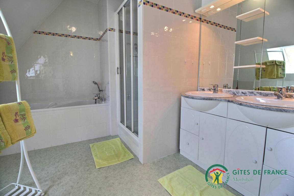 Lust auf Urlaub im Grünen? In Caden: viele Spazierwege, erholen Sie sich bei Wanderungen und Mountainbike-Touren. Kapellen, Steinkreuze und Kalvarienberge, Brunnen und Schlösser. Questembert liegt zwischen Vannes und Redon, Strände 22 km. Bemerkenswerte Kulturschätze. Serviceangeboten, kulturelle Einrichtungen. Rochefort-en-Terre mit engen Gassen und Fachwerkhäusern, besonderes Flair, Kunsthandwerker. Ein Besuch lohnt sich! Die kleine Stadt hat sowohl im Sommer als auch im Winter viel zu bieten! Ferienhaus auf dem Bauernhof, ruhig gelegen mitten im Grünen. Erdgeschoss: ein Wohnbereich mit Essbereich, Küche und Wohnzimmer, 1 Zimmer (1 Bett 140), 1 WC. 1. Stock: 2 Zimmer (4 Einzelbetten, 1 Babybett auf Nachfrage), Badezimmer mit Dusche und Badewanne, separates WC. Heizkosten zusätzlich. Dieses typisch bretonische Ferienhaus gehört zu einer Häusergruppe von 4 aneinander anliegenden Ferienhäusern auf einem Landwirtschaftsbetrieb. Ferienhaus anliegend an das Ferienhaus 56G287.