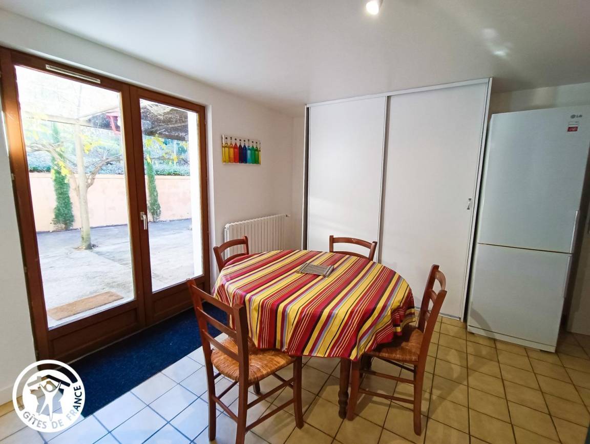 „L'appartement est au rez-de-chaussée de la maison du propriétaire: Il est de plain pied et dispose d'un accès à la terrasse et jardin. La salle de bain et les toilettes ont été joliment restaurés Le cadre est verdoyant et paisible, bien que situé à 5 minutes du centre ville. Cela nous a beaucoup plu et d'autres lieux de visites ne sont pas éloignés (Rocamadour, Pech Merle...). La proximité d'un supermarché et d'une boulangerie était également très pratique. Le propriétaire est sympathique et de bon conseil pour découvrir la région. C'est un endroit plaisant pour découvrir le Lot tout en se reposant.“