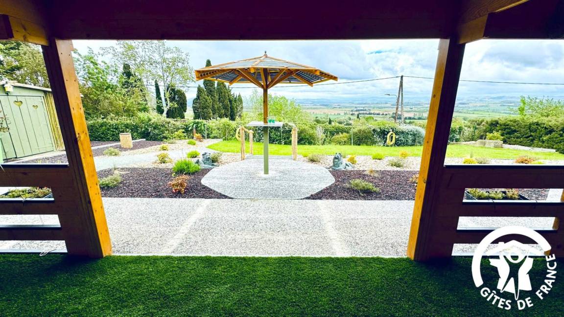 „Trop trop bien et reposant. 3 semaines de soleil. Gîte avec piscine, vue panoramique, magnifique jardin et tout est très bien aménagé et pratique. Pensons sérieusement y retourner.“