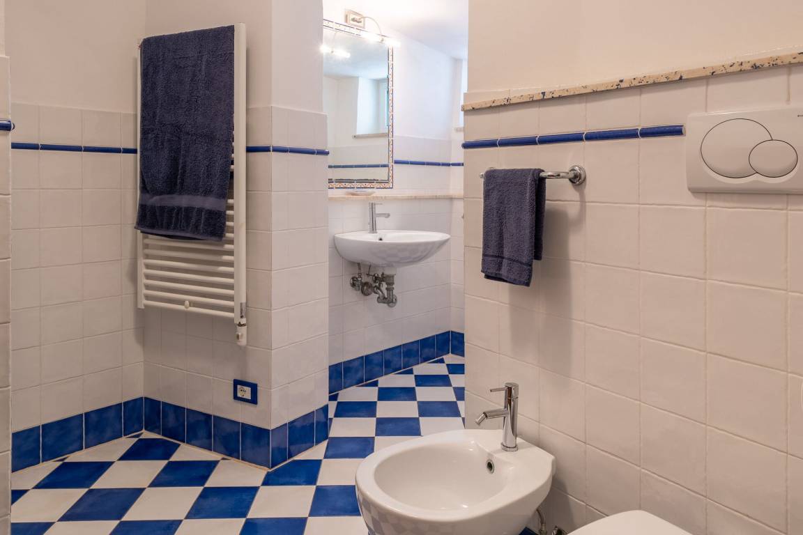 Badezimmer: Waschbecken, WC, Bidet, Badewanne, Dusche, WiFi Internet.