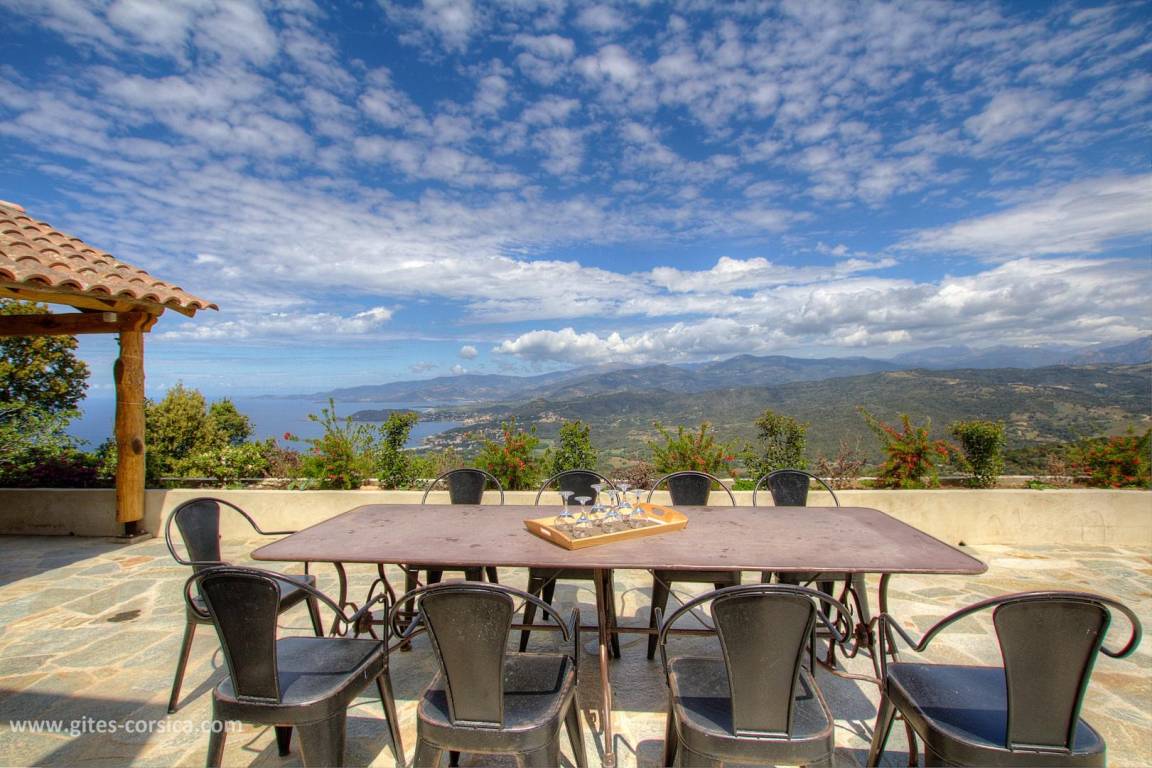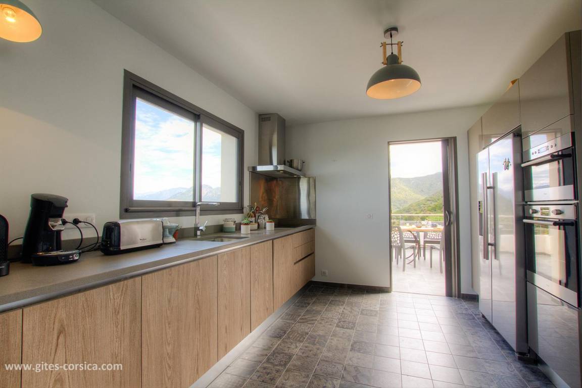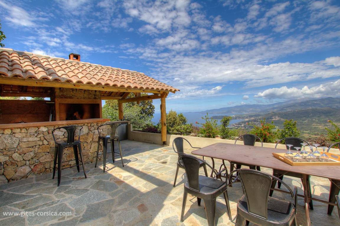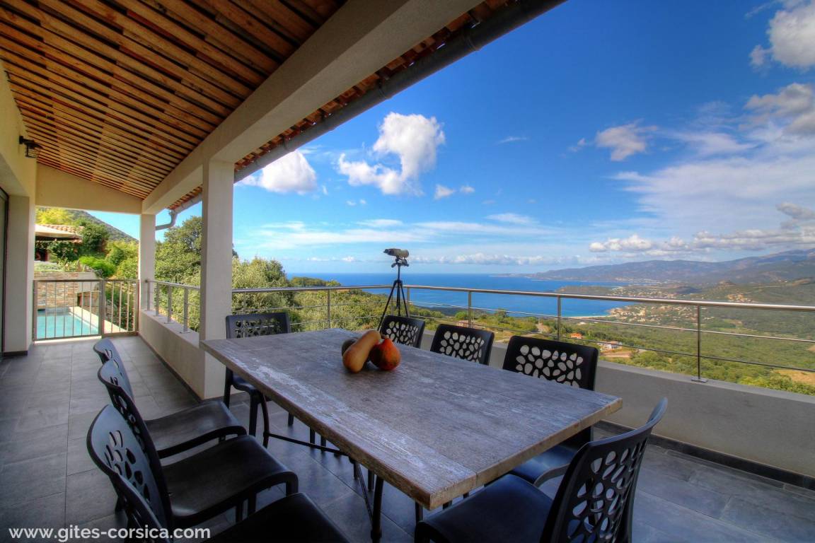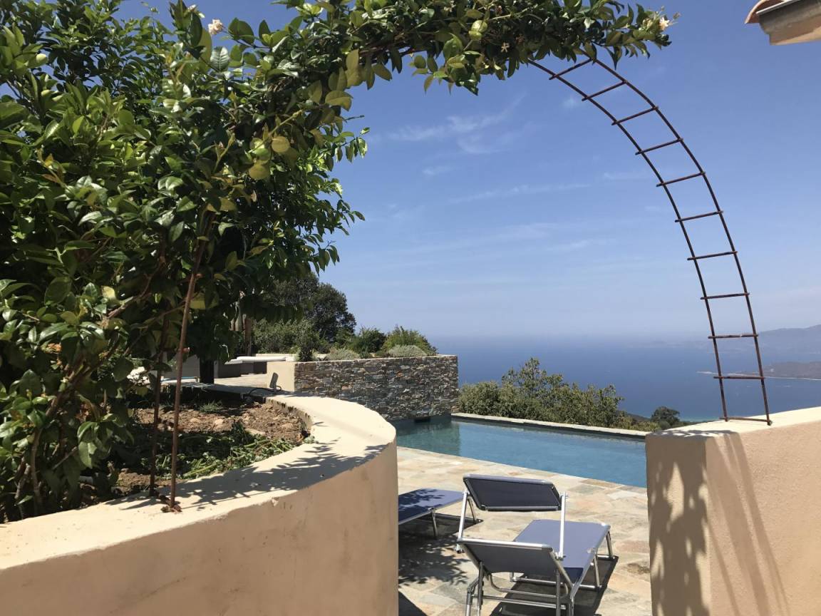 „La villa est vraiment très belle, très fonctionnelle,, confortable et de bonne qualité (literie, cuisine….) Piscine top pour nager devant une vue époustouflante sur la mer et la montagne. Les couleurs des couchers de soleil rivalisent de soir en soir. Et chaque chambre avec salle d’eau possède cette belle vue et permet à chacun d’être indépendant. plusieurs espaces de repas et de détente, jusqu’au grand barbecue/ cheminée très pratique avec sa cuisine d’été. De plus, Nathalie et Flavio( les propriétaires sont adorables de gentillesse et de bons conseils). S’il fallait trouver un petit bémol à la villa, c’est qu’elle est située à la sortie d’un village de montagne donc vue sur le golfe et très beaux rapaces que l’on voit évoluer tout près et les belles nuits étoilées mais un peu éloignée des commerces donc prévoir d’arriver avec son ravitaillement( grand frigo/ congèlo dans la cuisine). Merci encore pour cet agréable séjour. À recommander sans hésiter!“