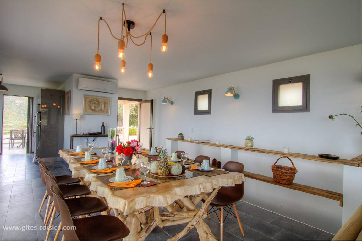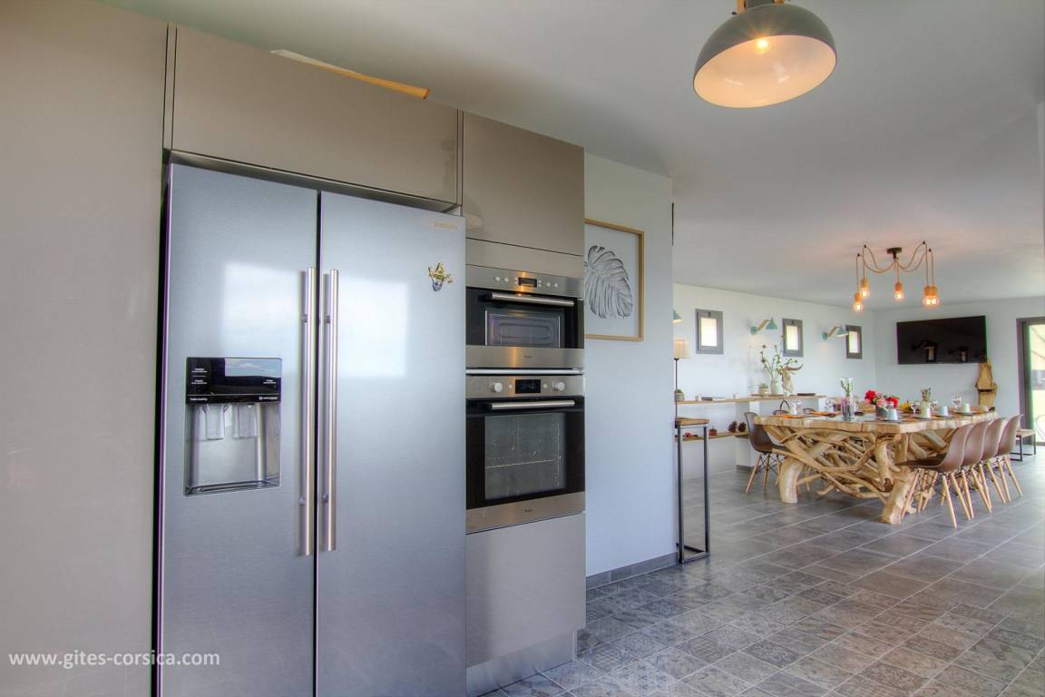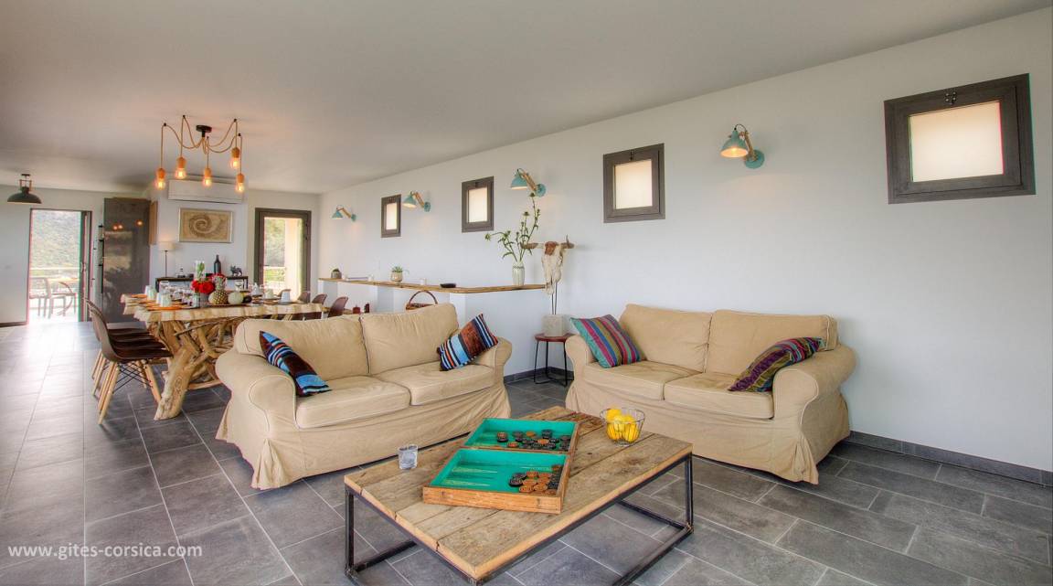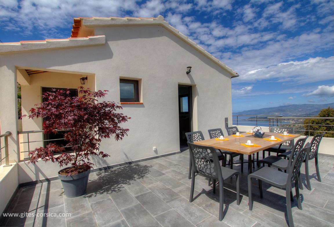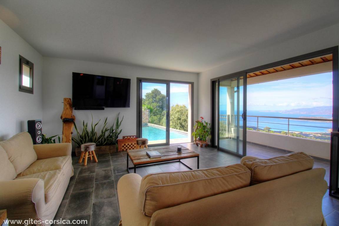 „La villa est vraiment très belle, très fonctionnelle,, confortable et de bonne qualité (literie, cuisine….) Piscine top pour nager devant une vue époustouflante sur la mer et la montagne. Les couleurs des couchers de soleil rivalisent de soir en soir. Et chaque chambre avec salle d’eau possède cette belle vue et permet à chacun d’être indépendant. plusieurs espaces de repas et de détente, jusqu’au grand barbecue/ cheminée très pratique avec sa cuisine d’été. De plus, Nathalie et Flavio( les propriétaires sont adorables de gentillesse et de bons conseils). S’il fallait trouver un petit bémol à la villa, c’est qu’elle est située à la sortie d’un village de montagne donc vue sur le golfe et très beaux rapaces que l’on voit évoluer tout près et les belles nuits étoilées mais un peu éloignée des commerces donc prévoir d’arriver avec son ravitaillement( grand frigo/ congèlo dans la cuisine). Merci encore pour cet agréable séjour. À recommander sans hésiter!“
