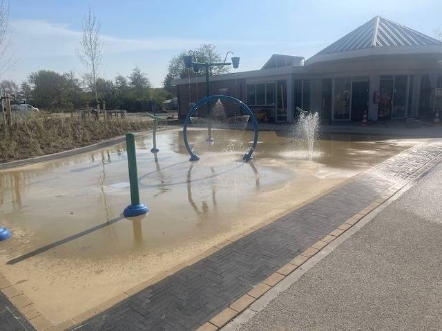 Der neue Wasserspielplatz bietet viel Spaß und Unterhaltung.