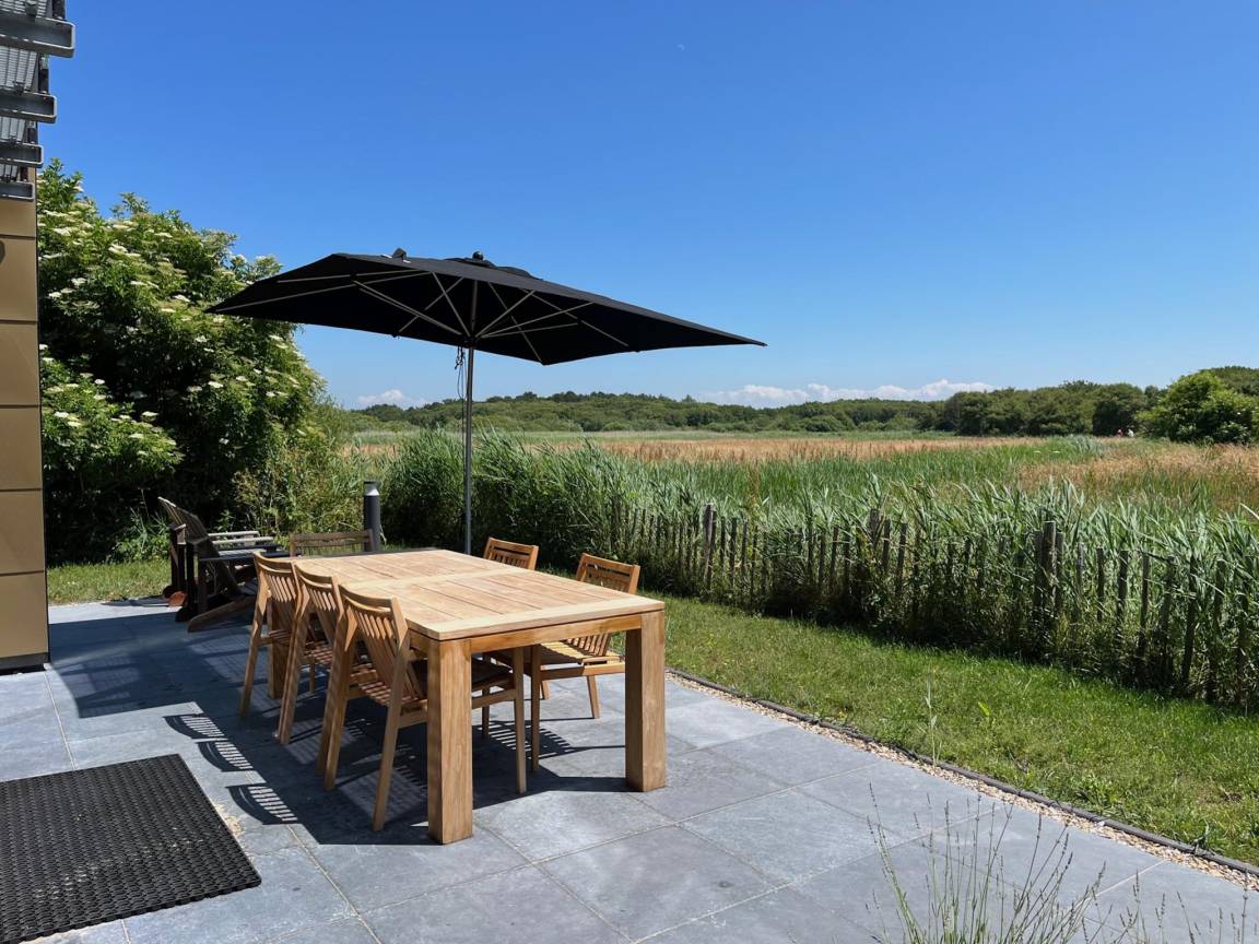 „Top-Ferienhaus: Charaktervoller Neubau, sehr gemütlich eingerichtet und mit allen Materialien (in Küche, Bad...) und moderner Technik (außer Klimaanlage) ausgestattet. Auch die Lage mitten im Naturschutzgebiet, und der Blick auf dieses Naturschutzgebiet vom Sofa aus durch das riesige Fenster im Wohnzimmer, ist wahnsinnig schön. Parkplatz am Haus. Reibungslos nutzbar für 6 Personen.“
